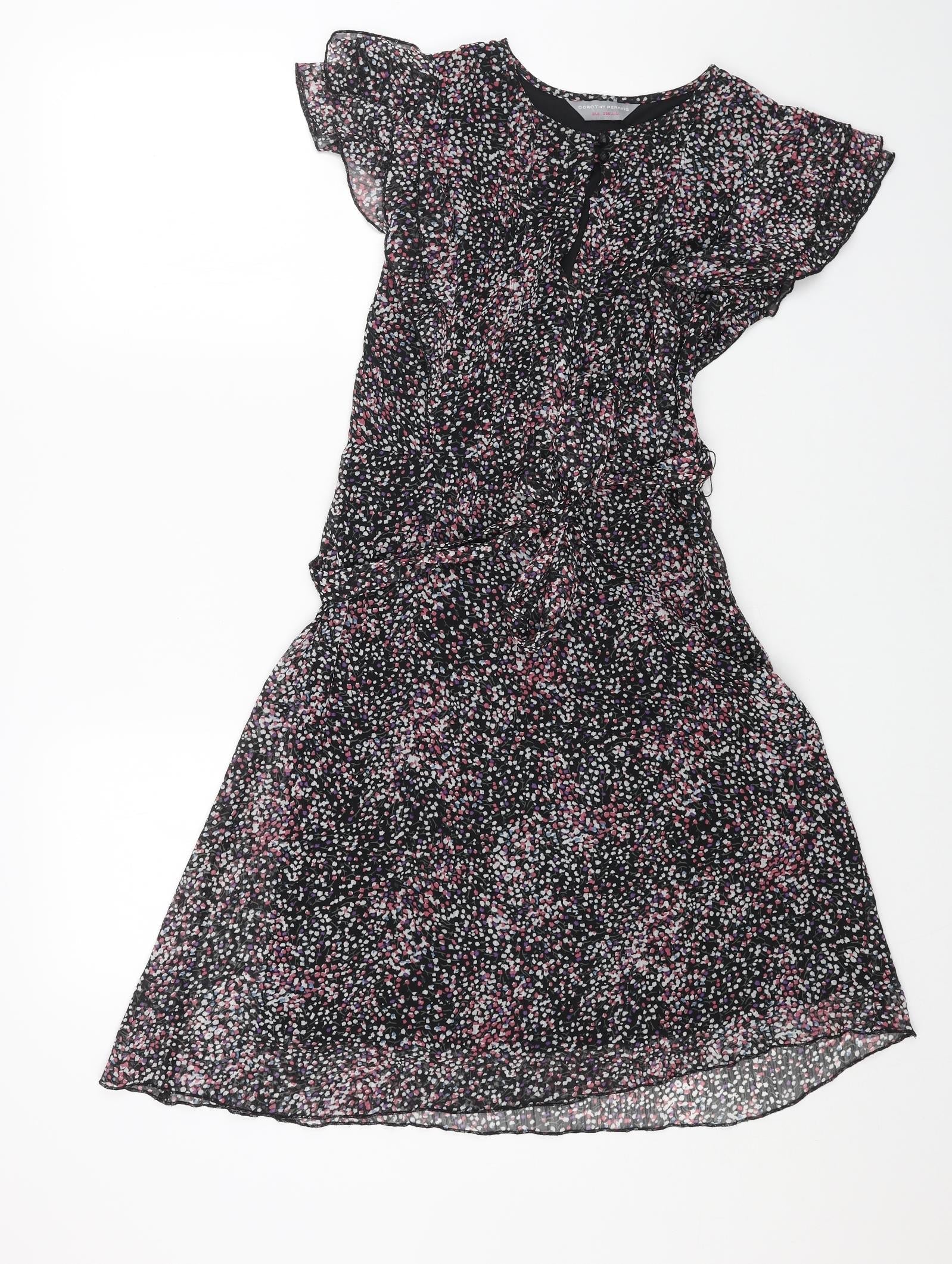 Dorothy Perkins Womens Black Geometric Polyester A-Line Size 8 Boat Neck Zip