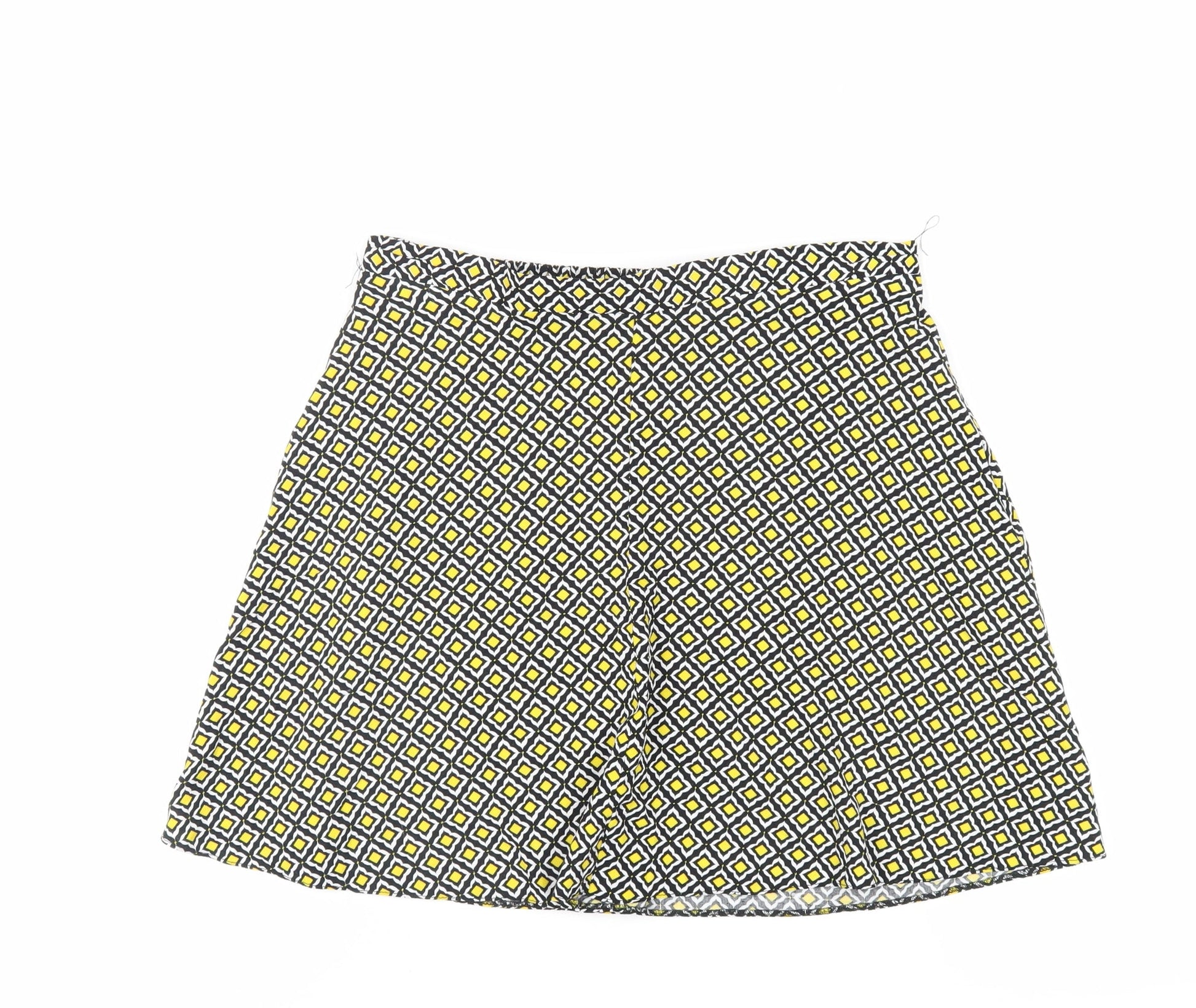 Dorothy Perkins Womens Black Geometric Polyester Skater Skirt Size 14 - Elasticated Waist
