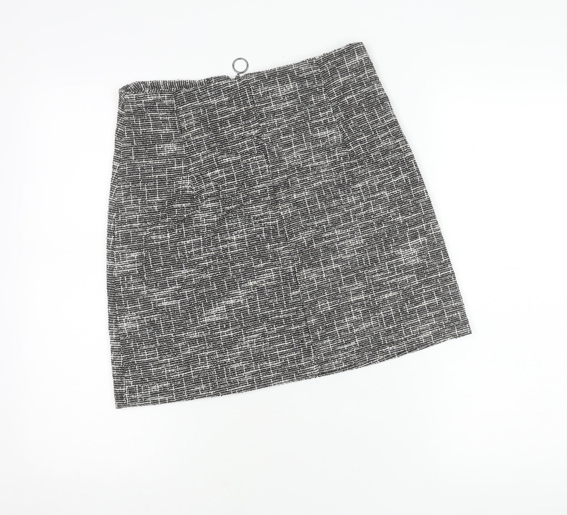 Dorothy Perkins Women's Black Geometric Tweed Skirt UK10 Short Pencil