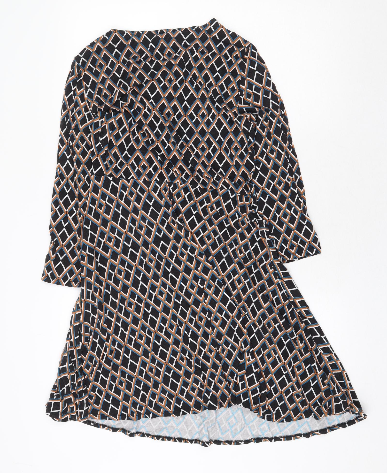 Dorothy Perkins Womens Black Geometric Viscose Fit & Flare Size 8 Round Neck Pullover