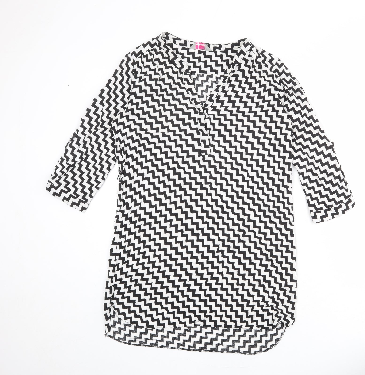 Dorothy Perkins Womens Black Geometric Viscose Shirt Dress Size 10 V-Neck Button