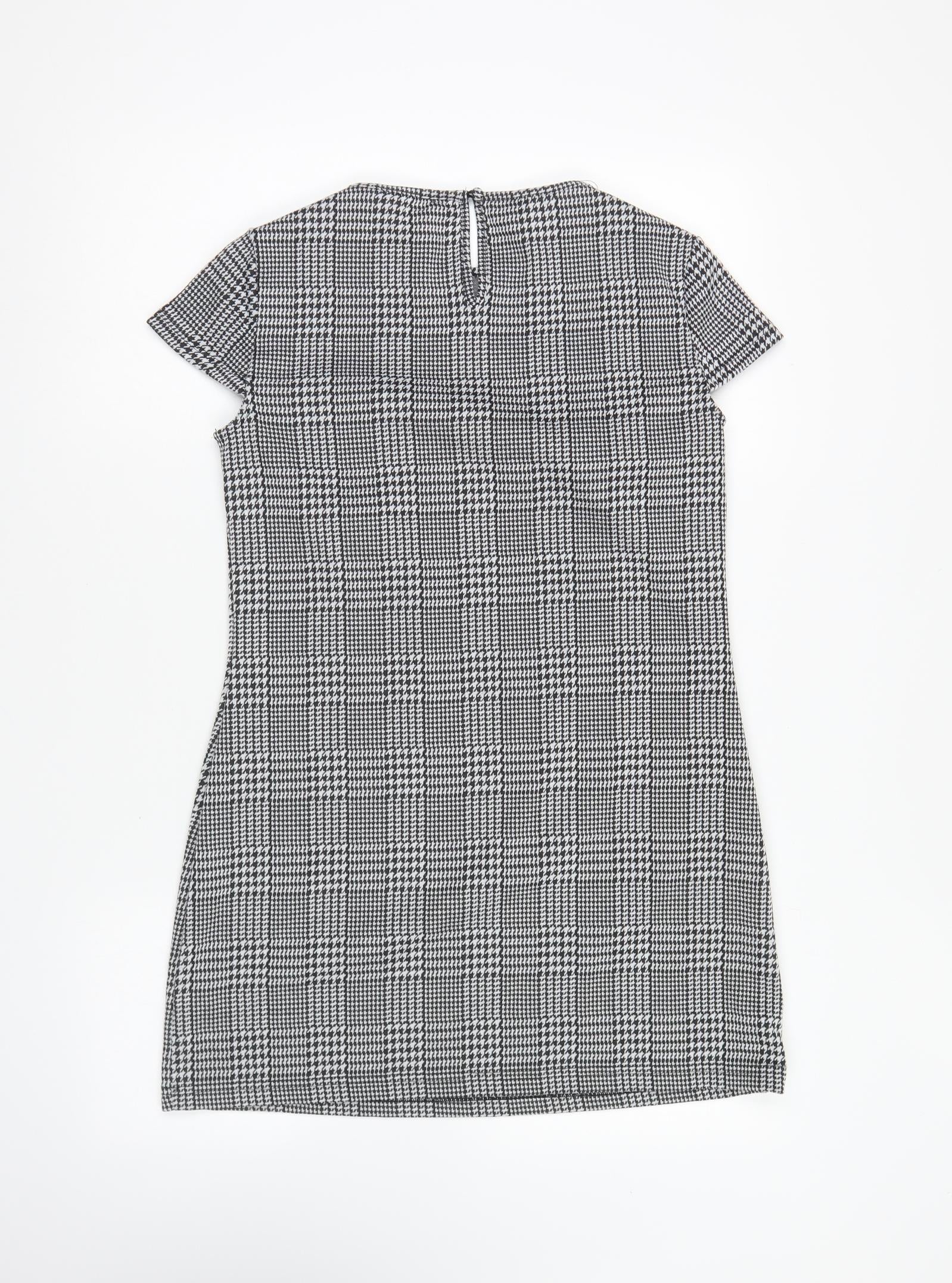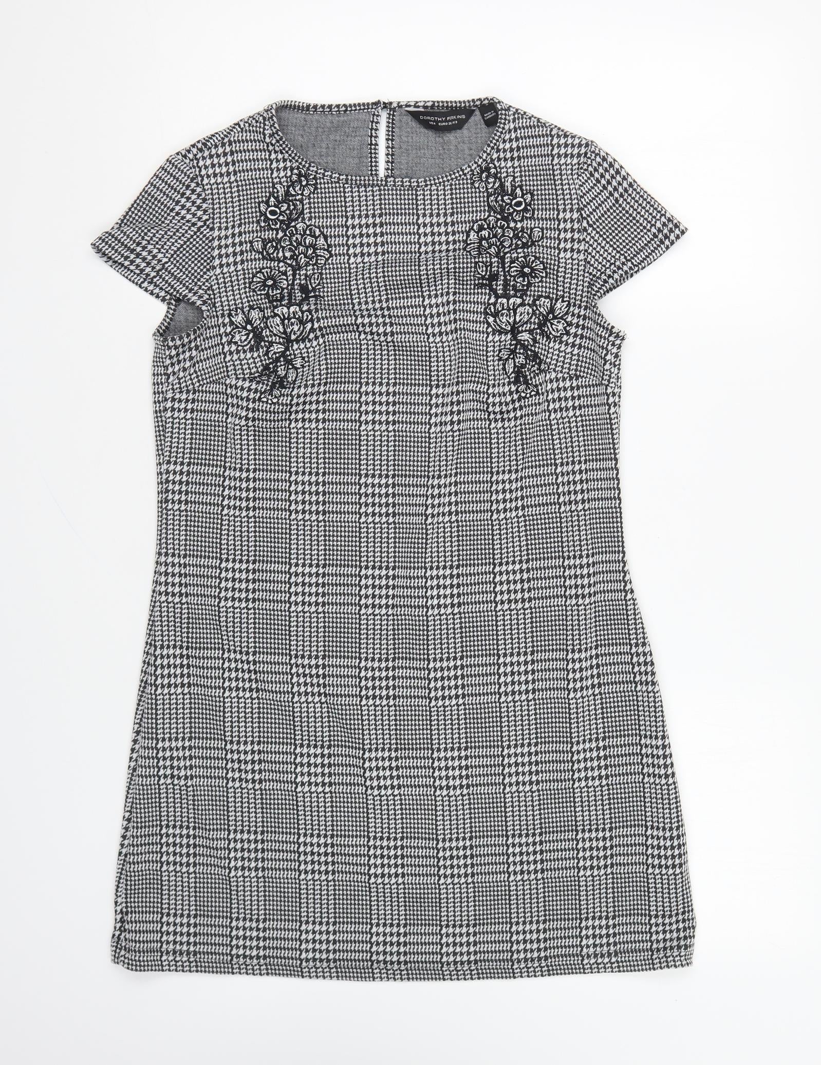 Dorothy Perkins Womens Black Houndstooth Polyester Shift Size 8 Round Neck Button