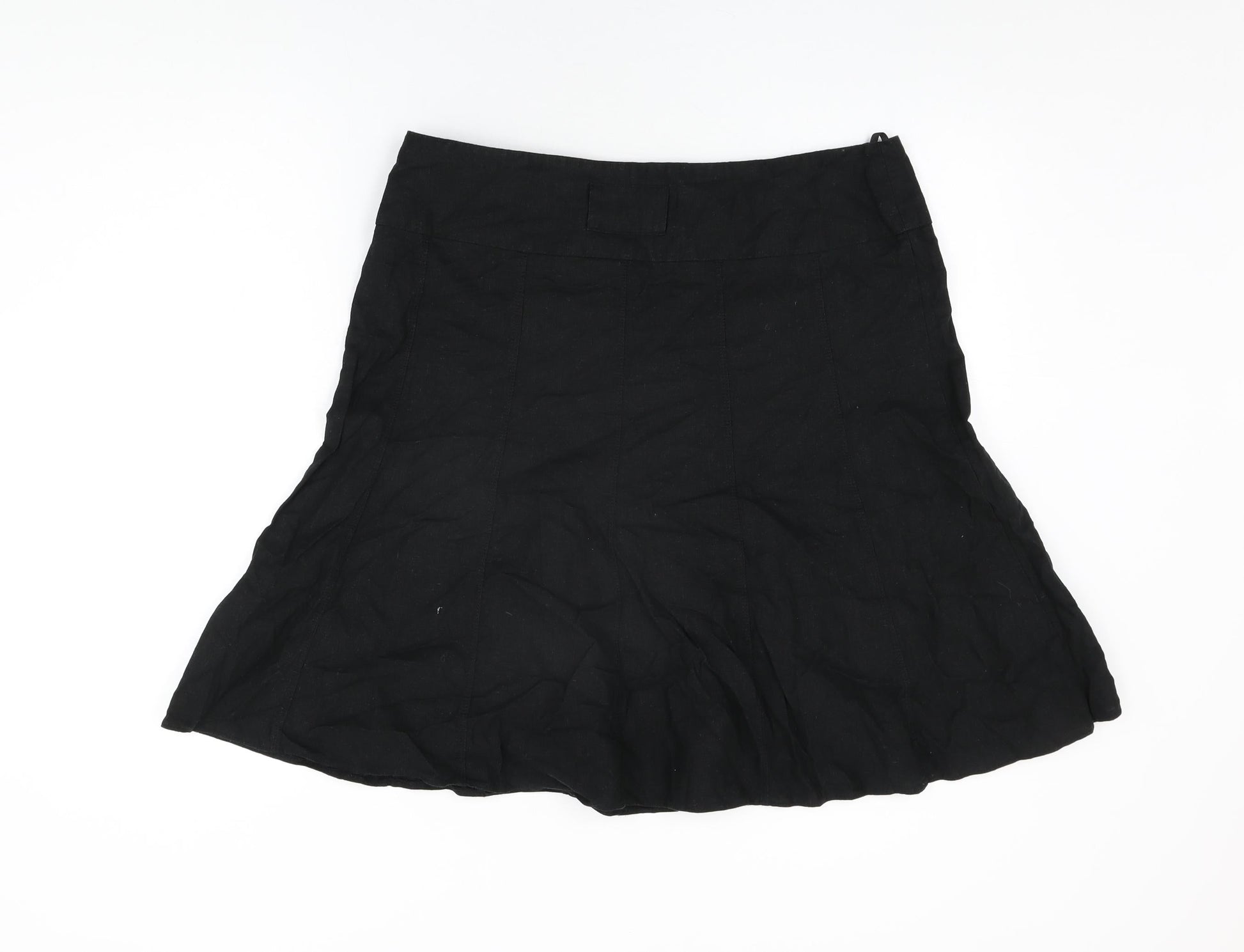 Dorothy Perkins Womens Black Linen Flare Skirt Size 16 Zip