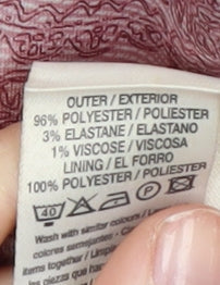 - Material Breakdown: 96% Polyester 3% Elastane 1% Viscose