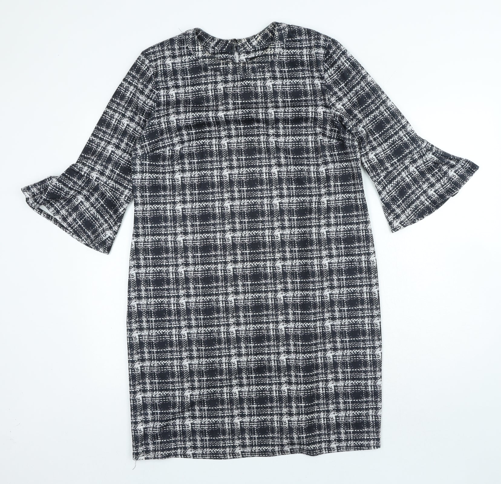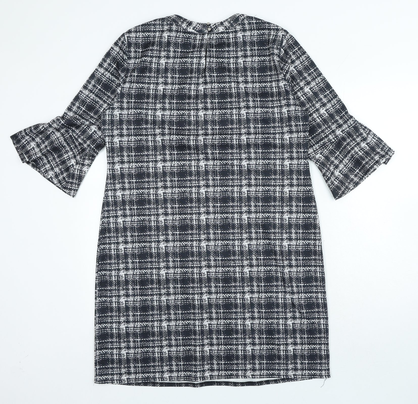 Dorothy Perkins Womens Black Plaid Polyester A-Line Size 14 Round Neck Hook & Loop