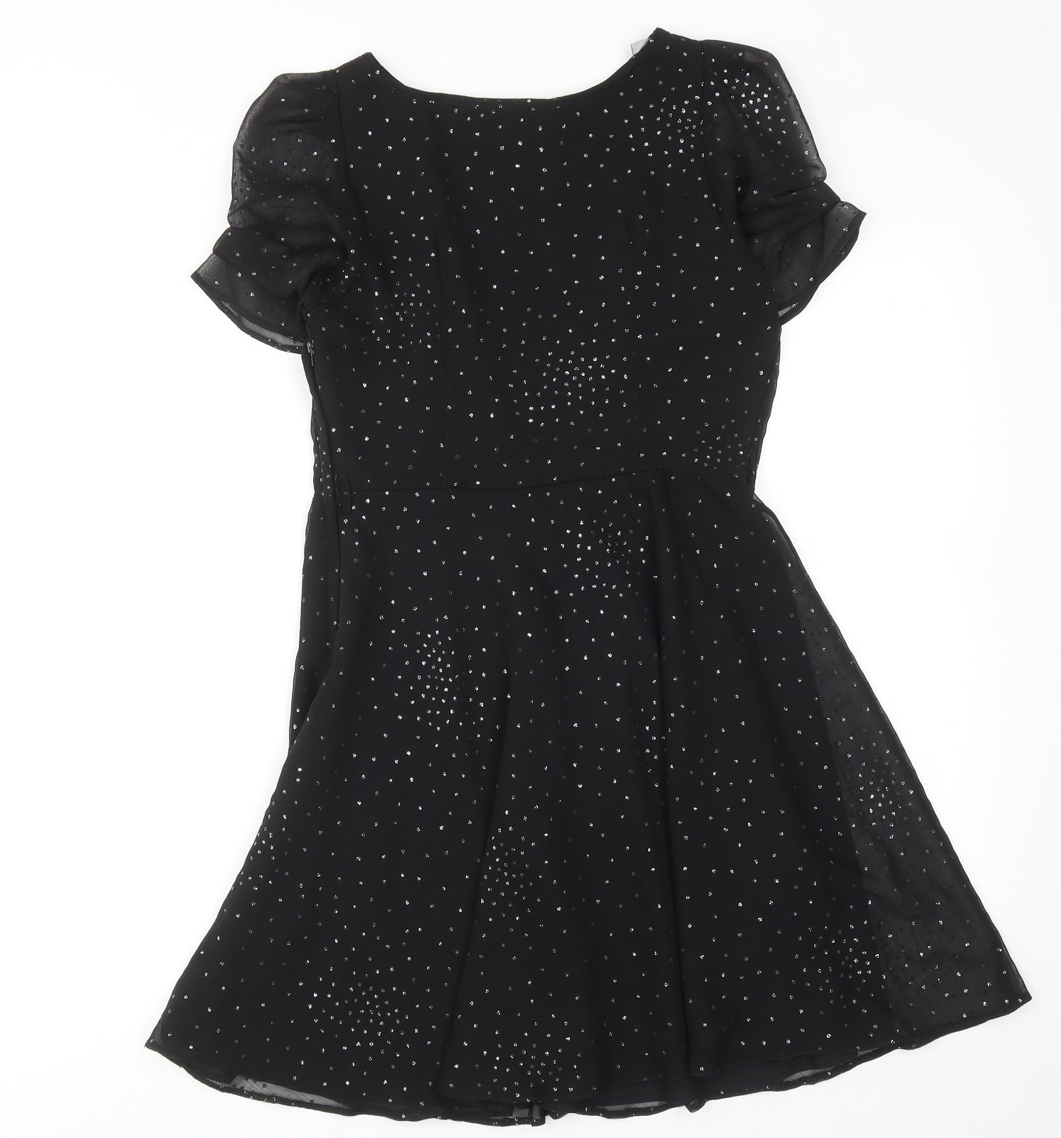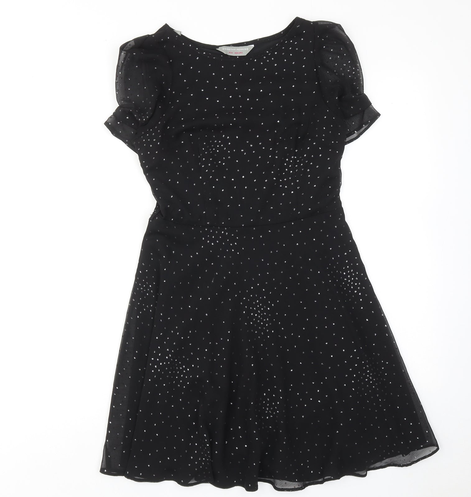 Dorothy Perkins Womens Black Polka Dot Polyester A-Line Size 8 Round Neck Zip