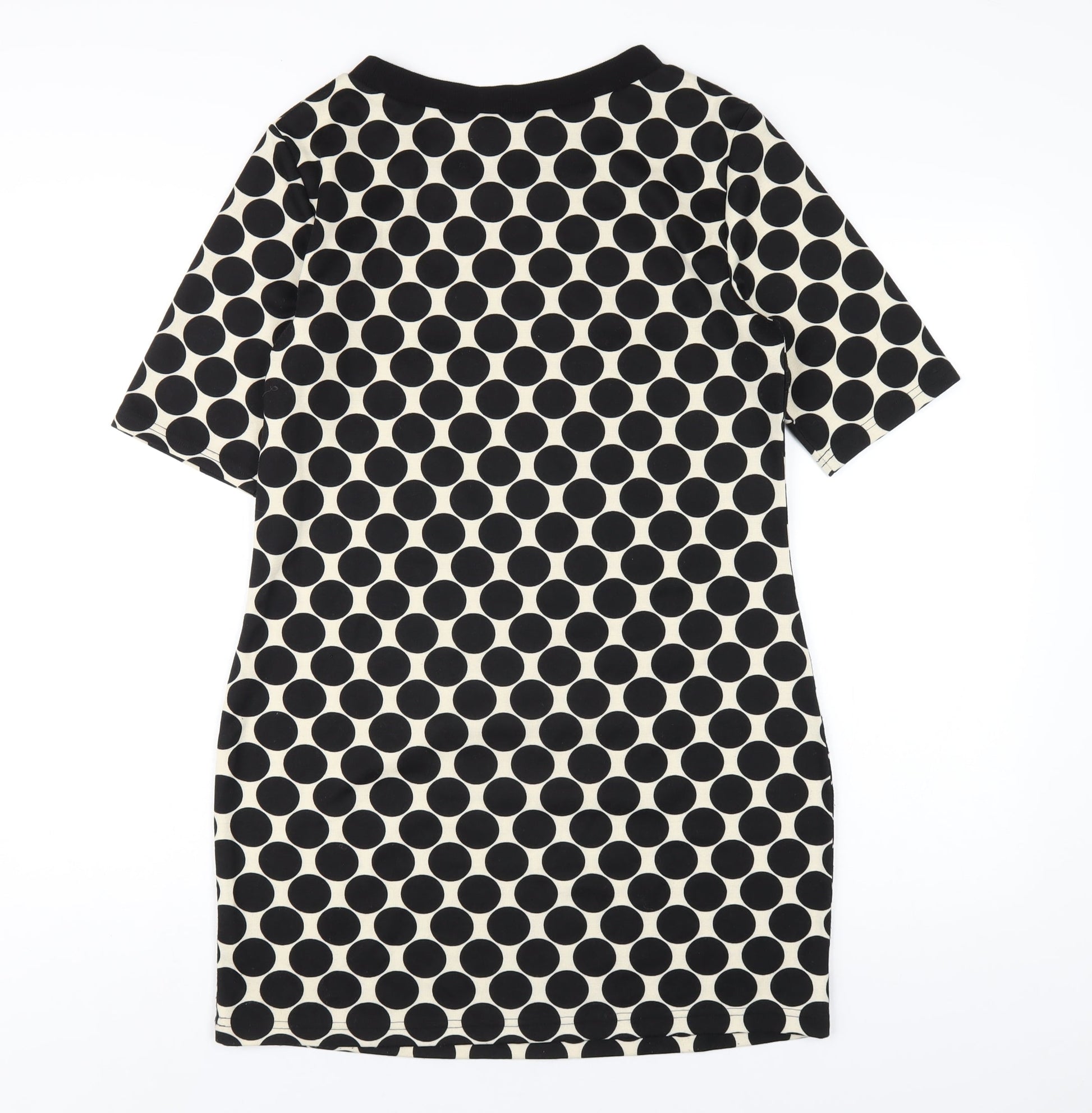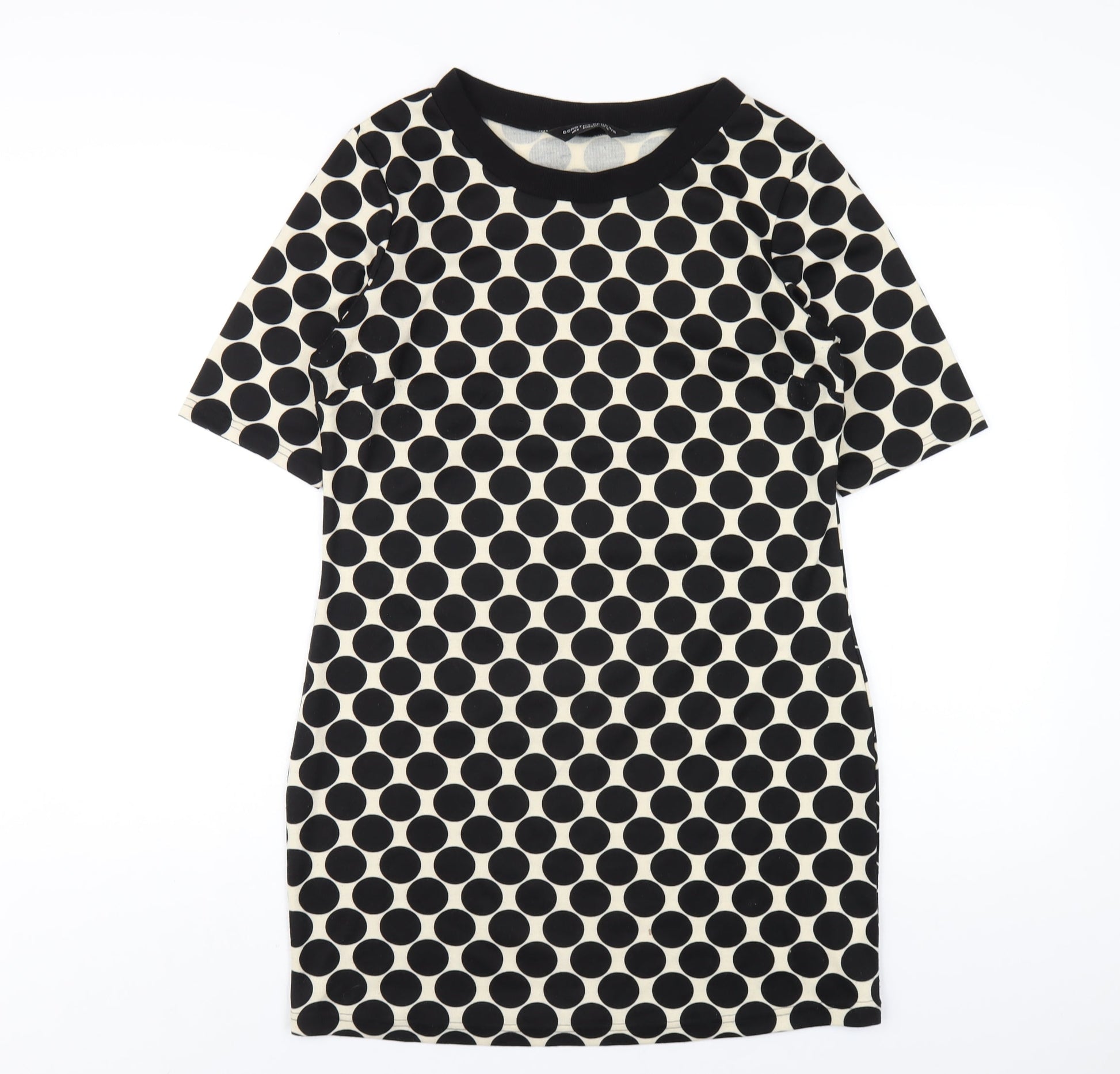 Dorothy Perkins Womens Black Polka Dot Polyester T-Shirt Dress Size 10 Round Neck Pullover