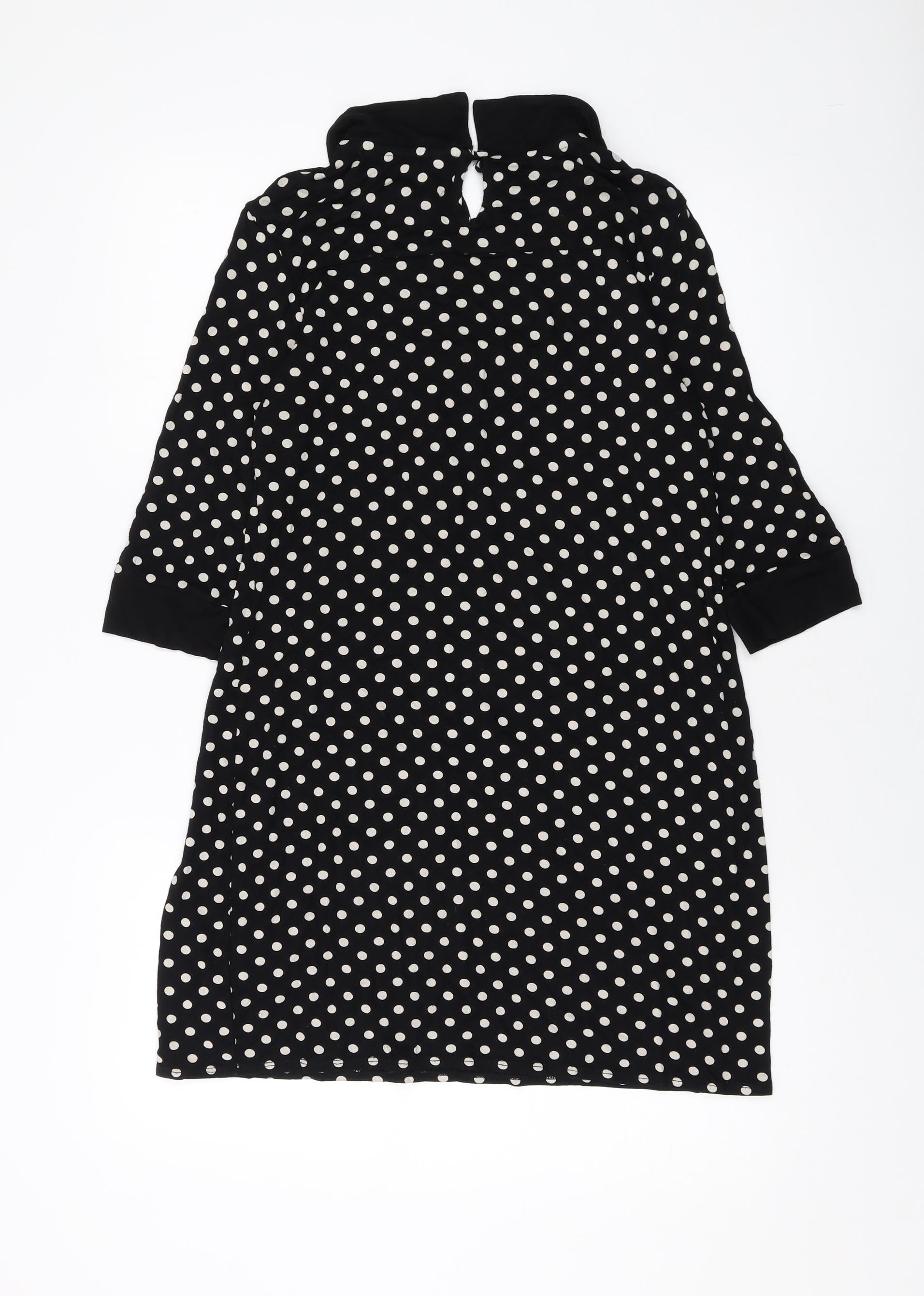 Dorothy Perkins Womens Black Polka Dot Viscose A-Line Size 14 Collared Button