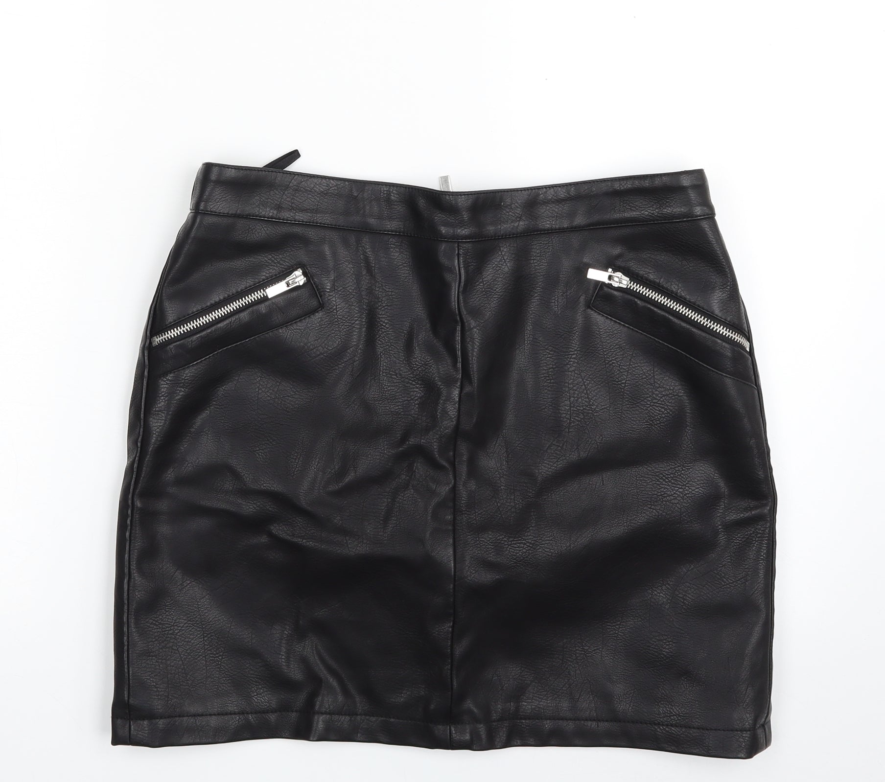 Dorothy Perkins Womens Black Polyester A-Line Skirt Size 10 Zip
