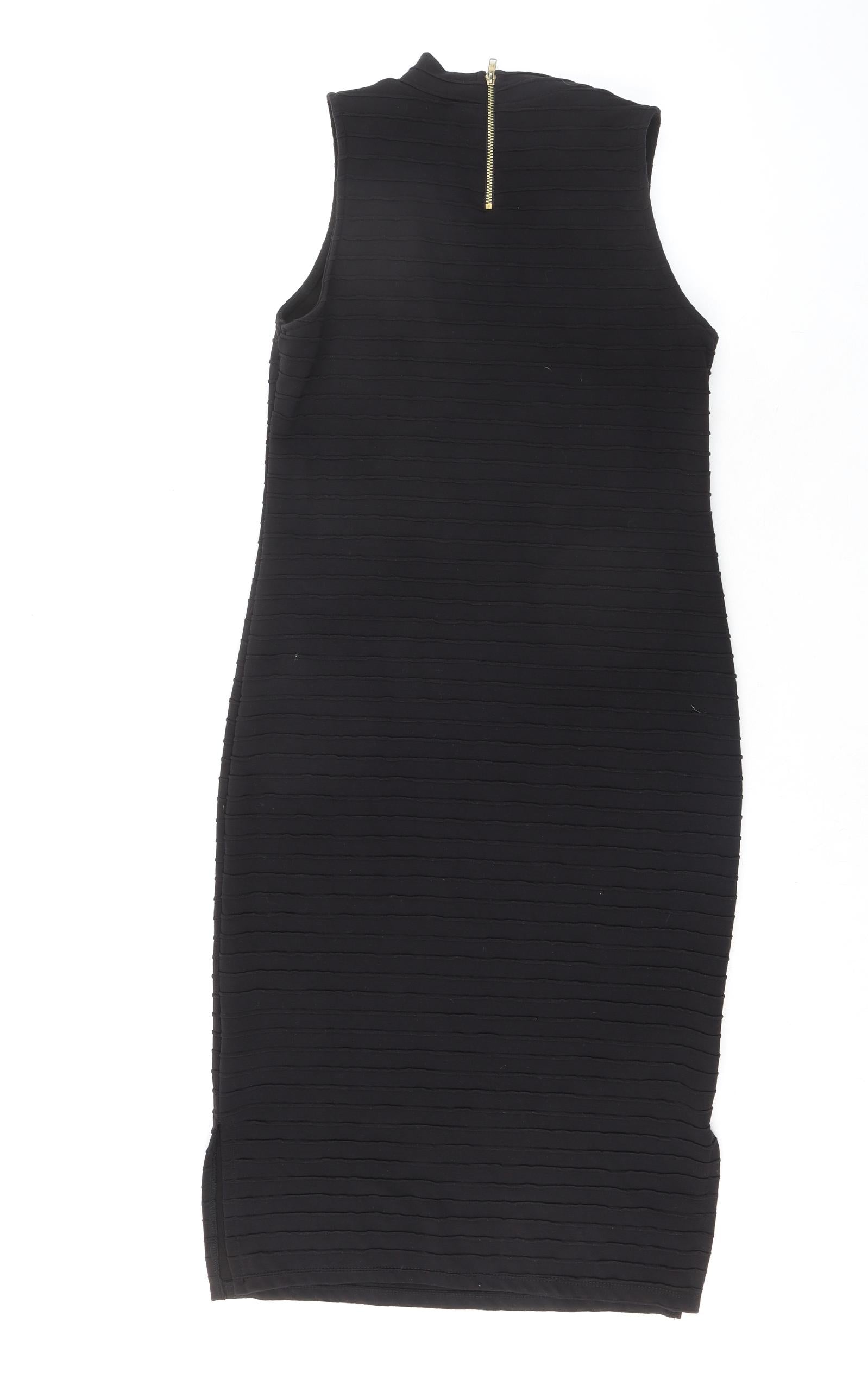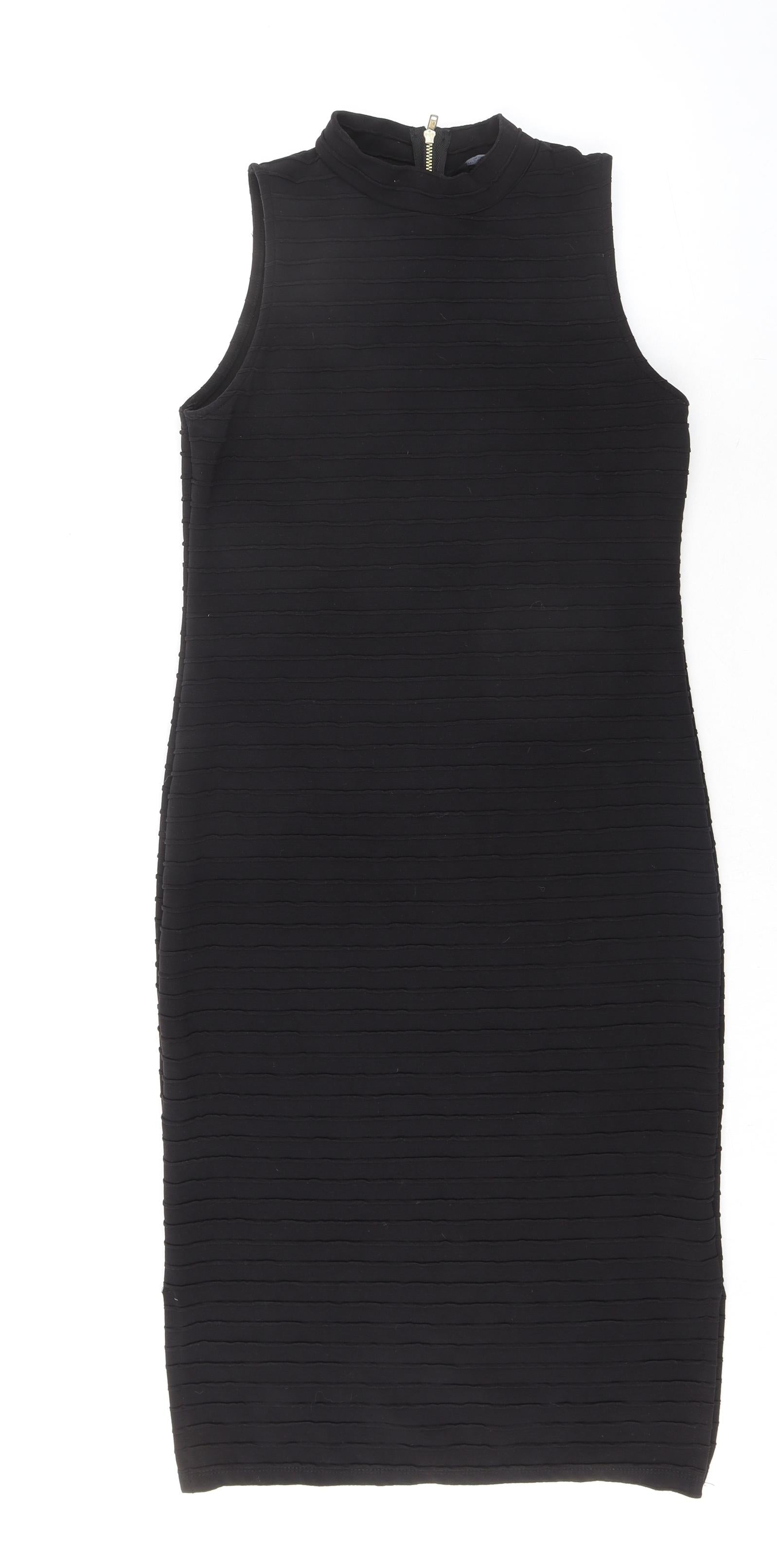 Dorothy Perkins Womens Black Polyester Bodycon Size 12 Mock Neck Zip - Textured