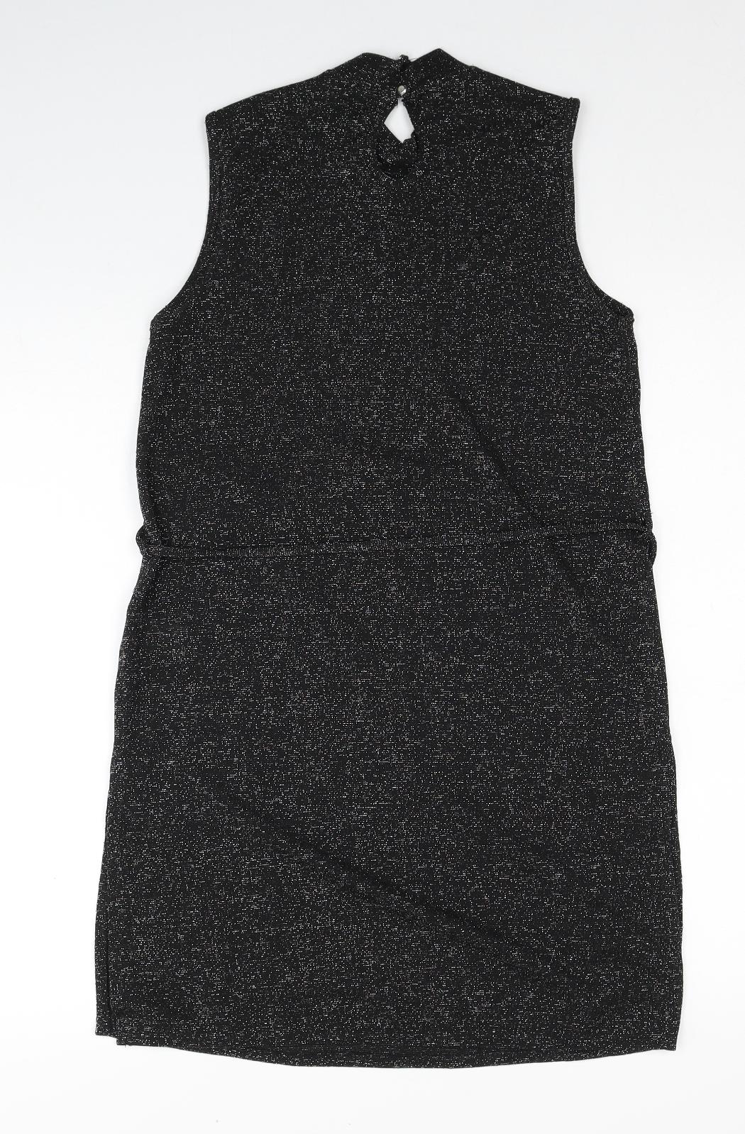 Dorothy Perkins Womens Black Polyester Mini Size 8 Mock Neck Button
