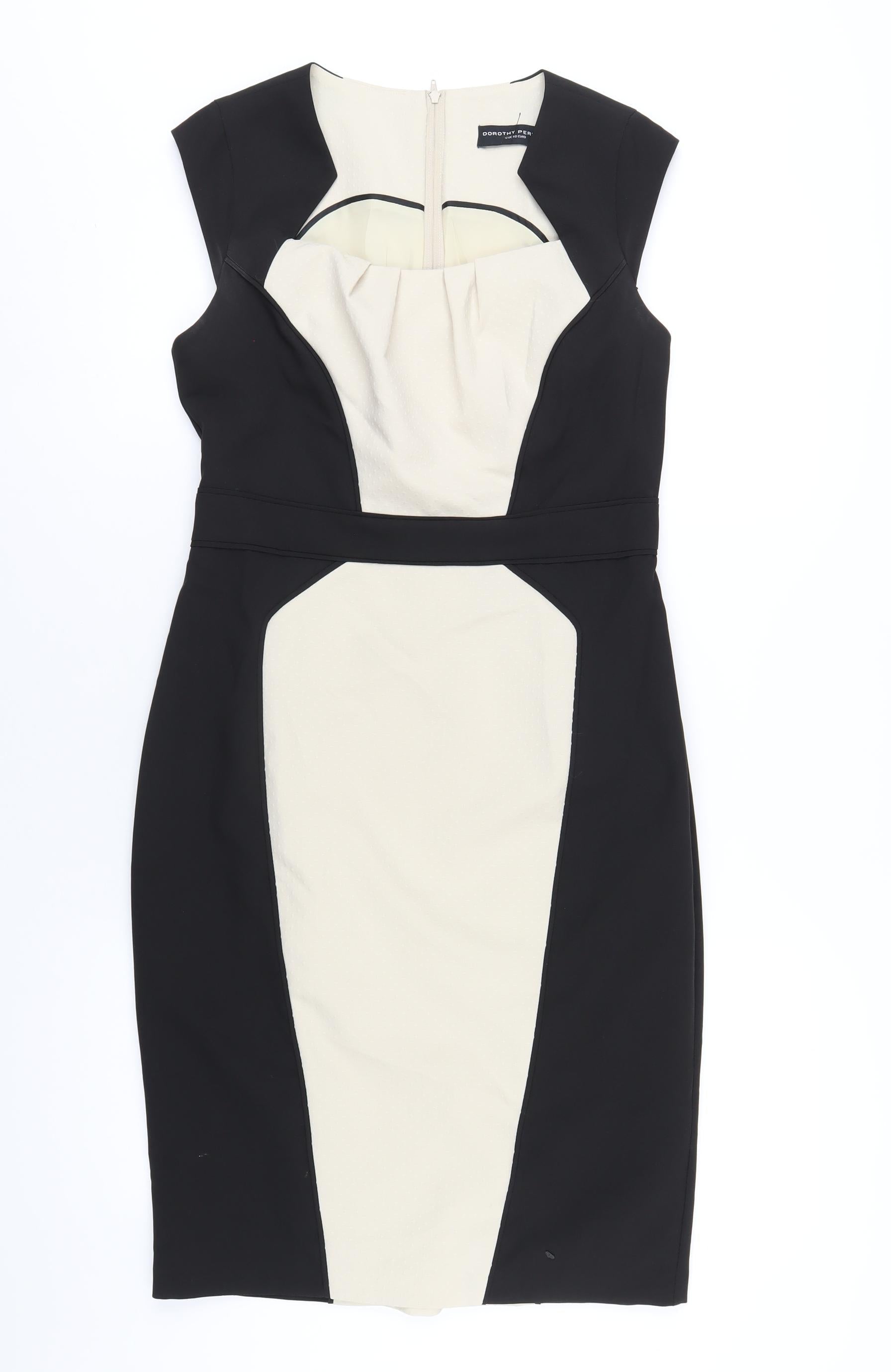 Dorothy Perkins Womens Black Polyester Pencil Dress Size 12 Square Neck Zip