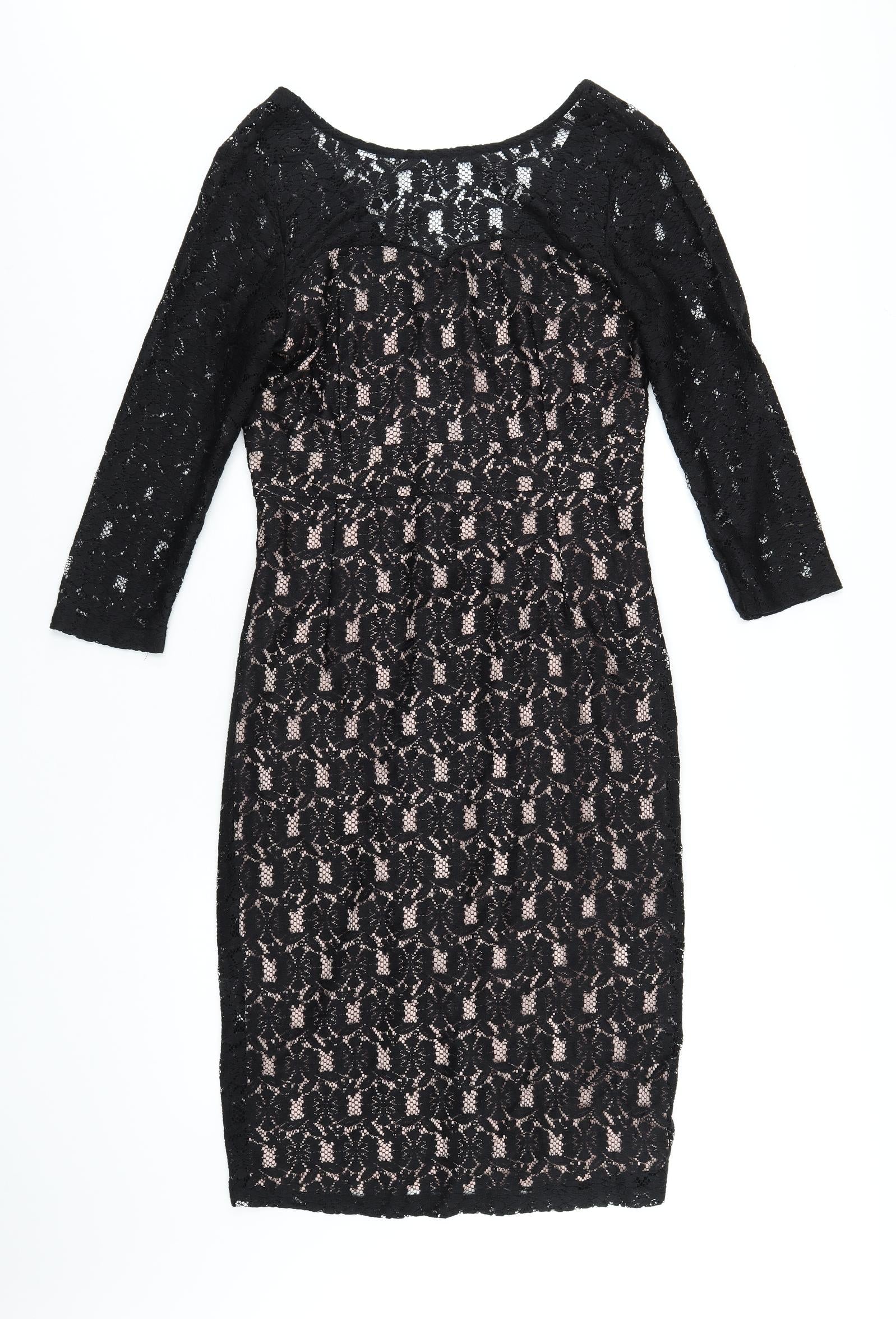 Dorothy Perkins Womens Black Polyester Pencil Dress Size 14 Round Neck Zip