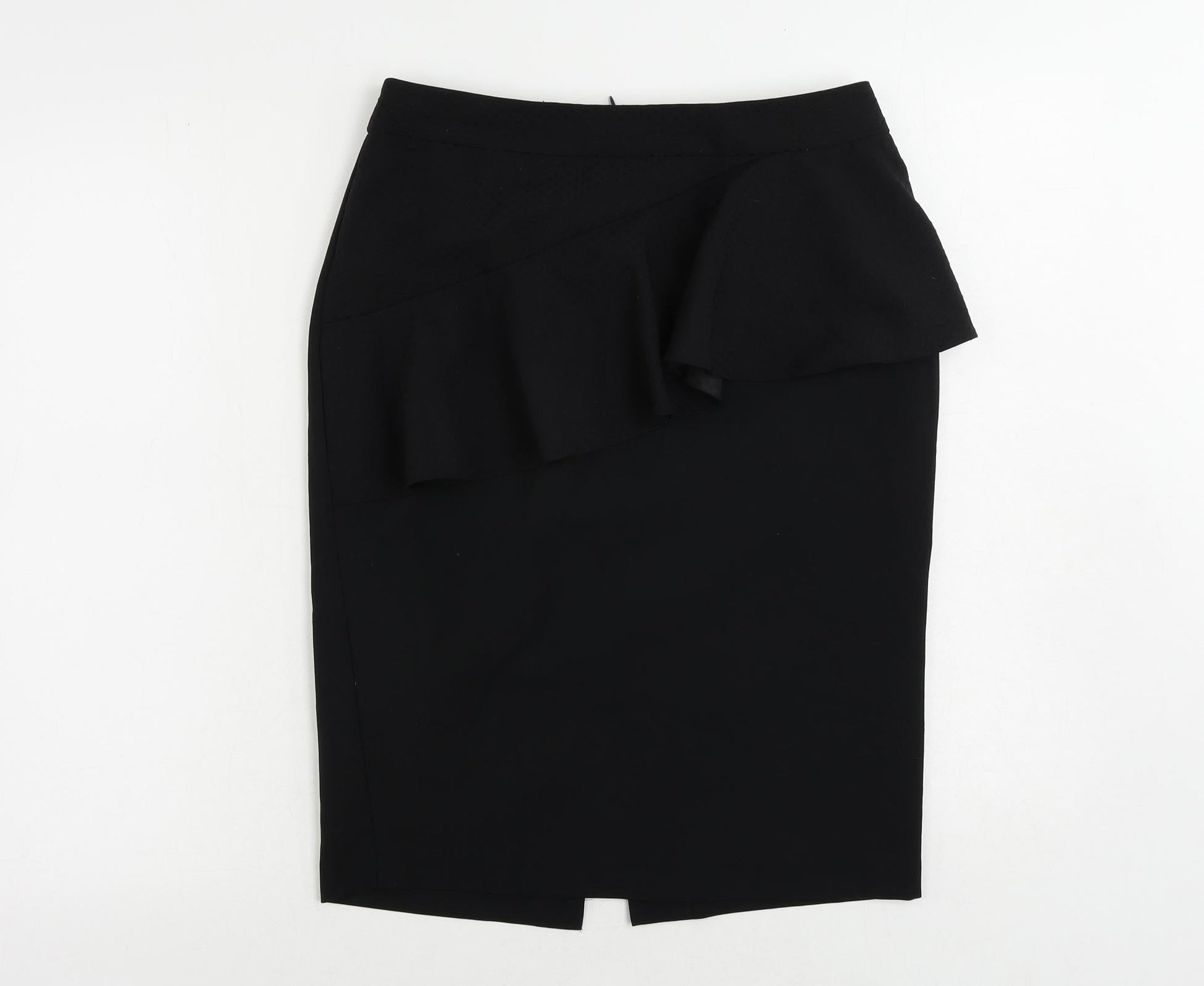 Dorothy Perkins Womens Black Polyester Straight & Pencil Skirt Size 10 Zip - Ruffle