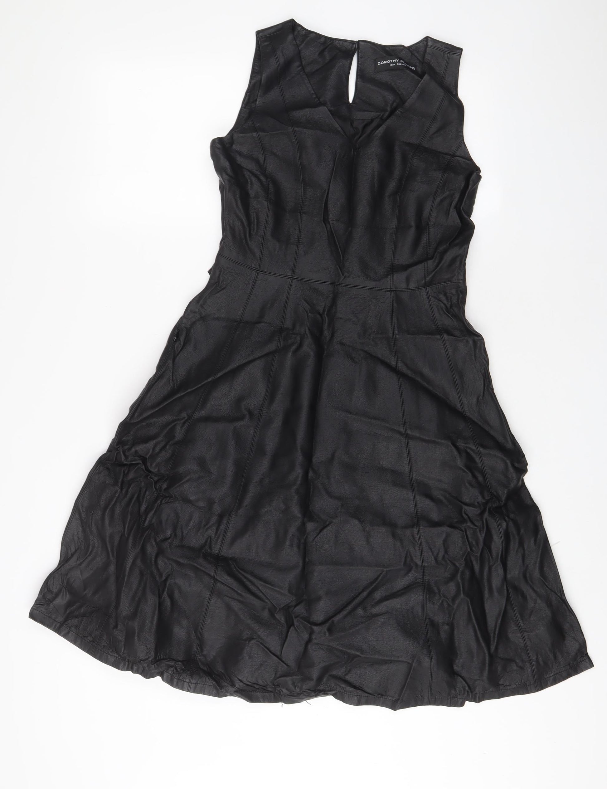 Dorothy Perkins Womens Black Polyurethane A-Line Size 10 V-Neck Zip
