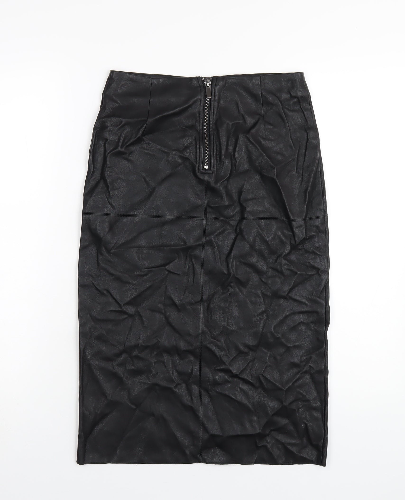 Dorothy Perkins Womens Black Polyurethane Straight & Pencil Skirt Size 8 Zip - Leather Look