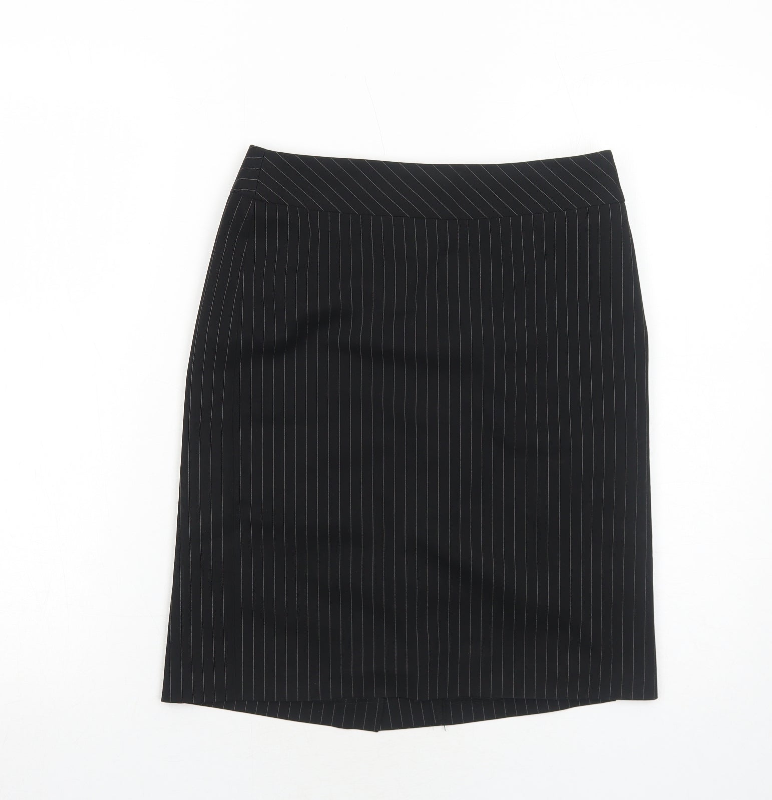 Dorothy Perkins Womens Black Striped Polyester A-Line Skirt Size 8 Regular Zip