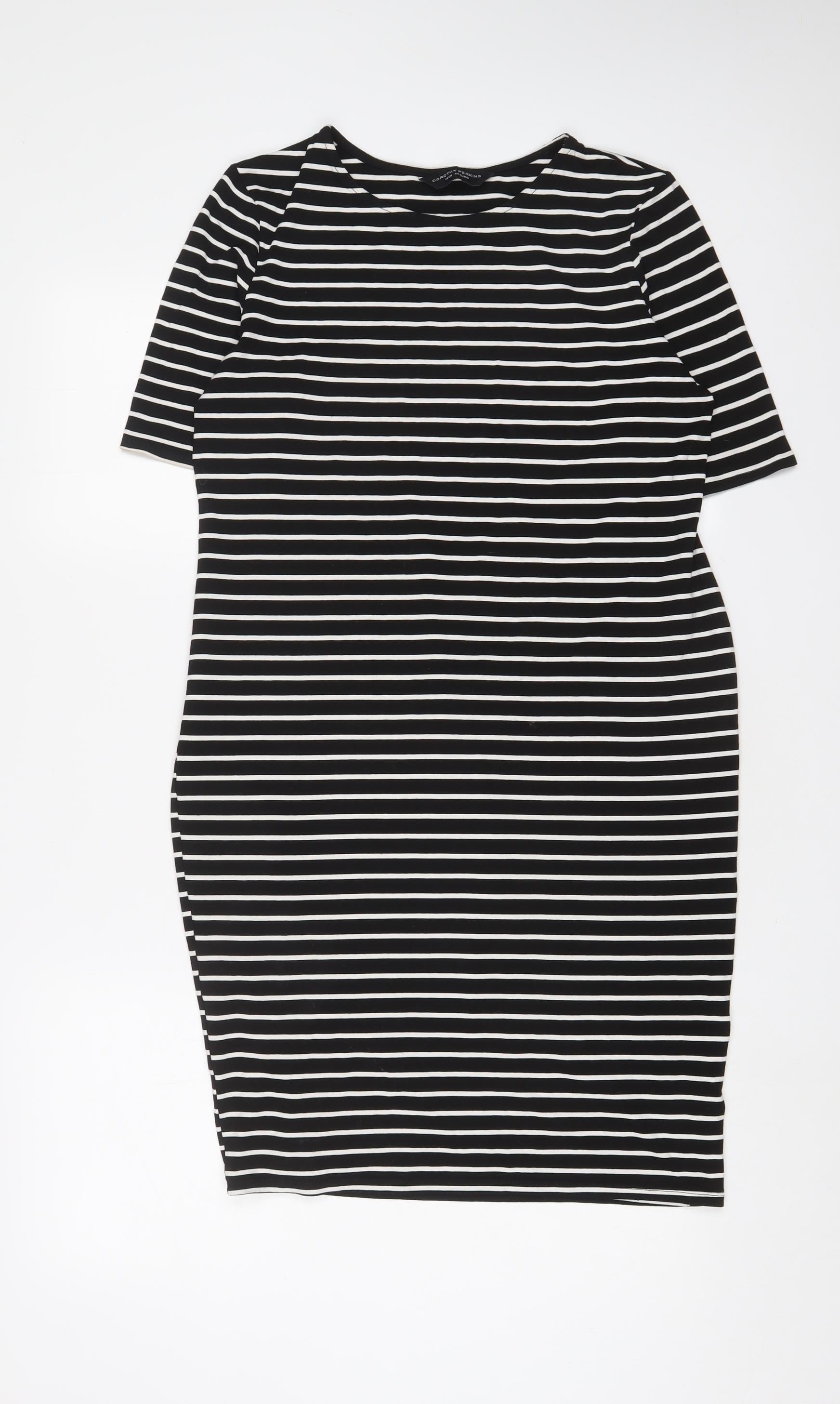 Dorothy Perkins Womens Black Striped Viscose Bodycon Size 16 Boat Neck Pullover