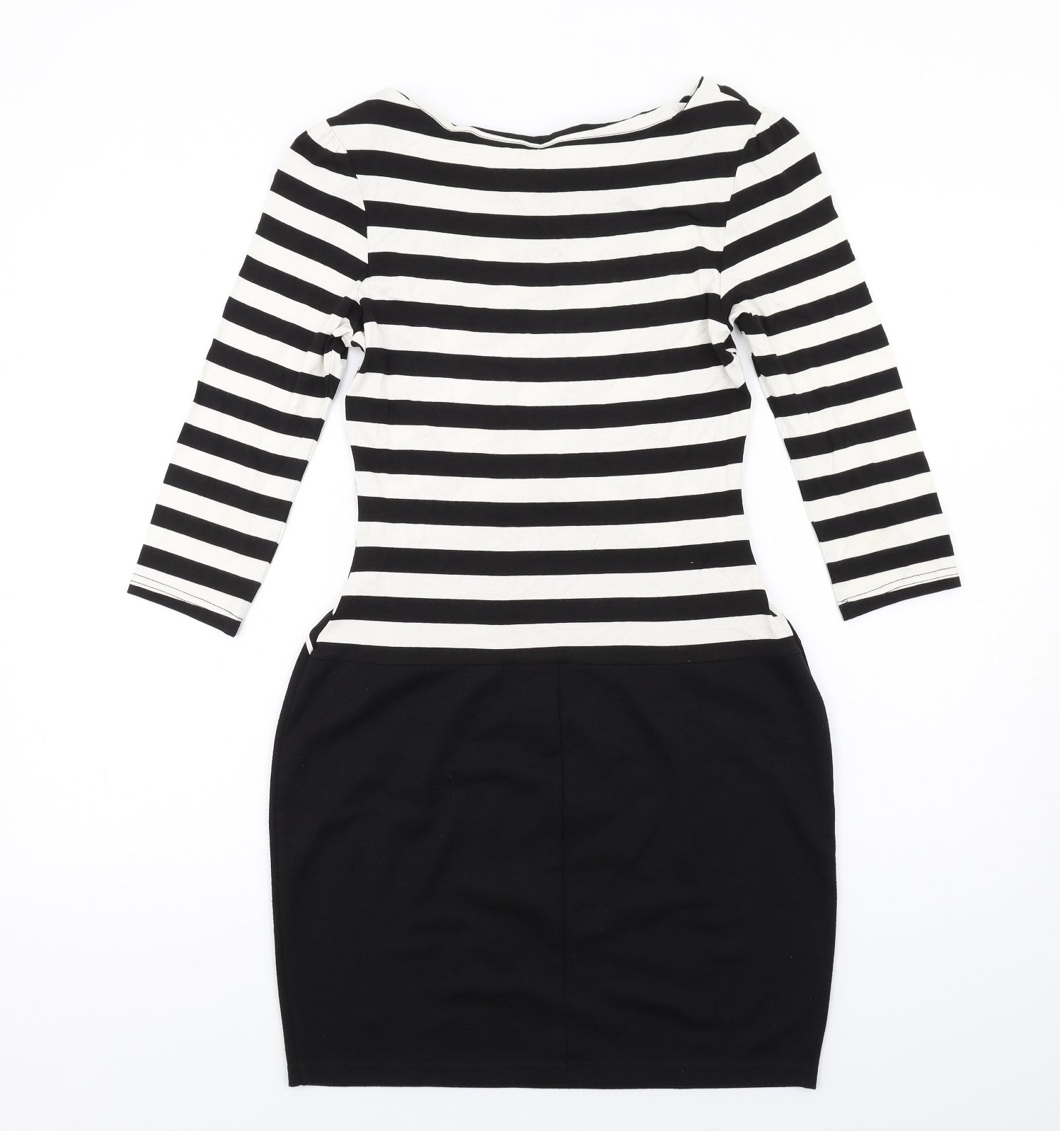 Dorothy Perkins Womens Black Striped Viscose Shift Size 10 Round Neck Pullover