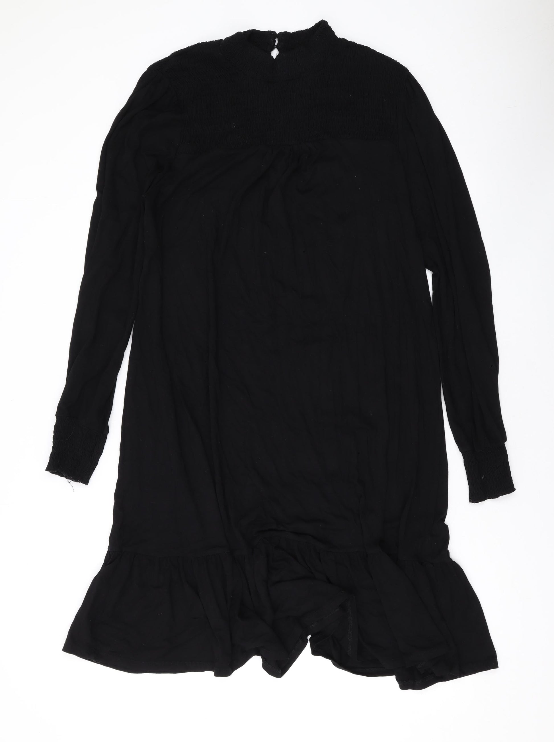 Dorothy Perkins Womens Black Viscose A-Line Size 14 Mock Neck Button