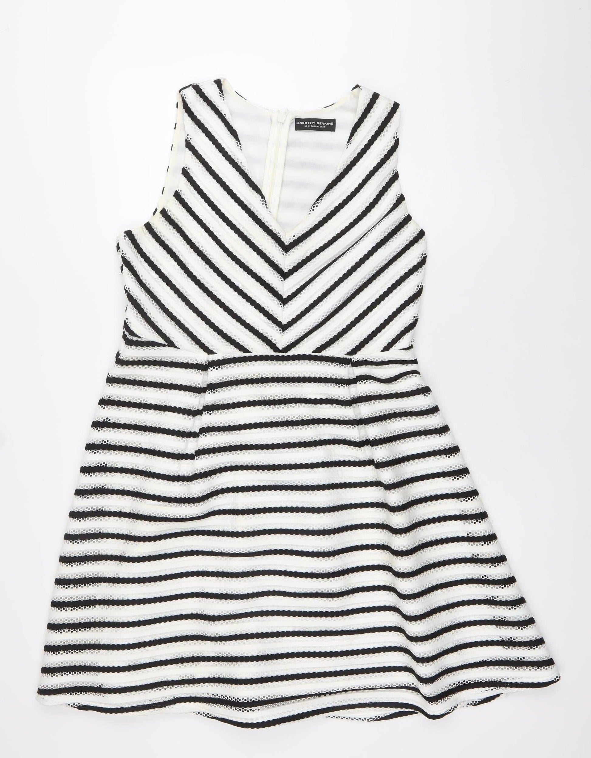 Dorothy Perkins Womens Black White Striped A-Line Dress Size 14