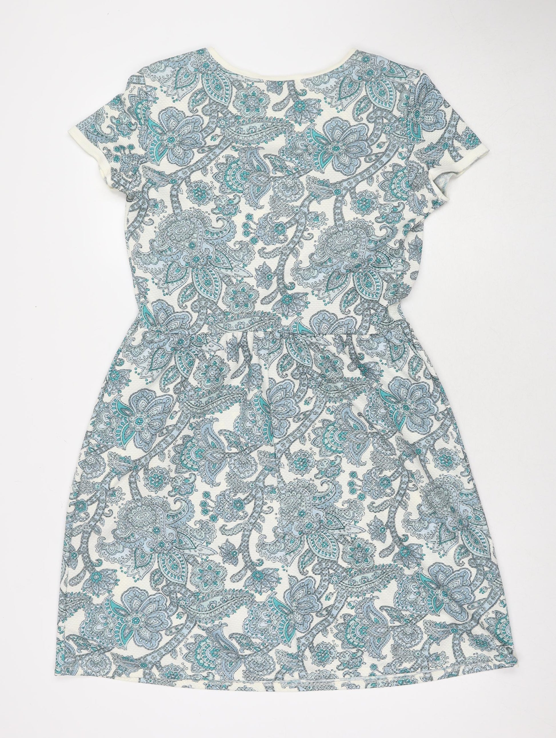 Dorothy Perkins Womens Blue Floral Polyester A-Line Size 14 Round Neck Pullover
