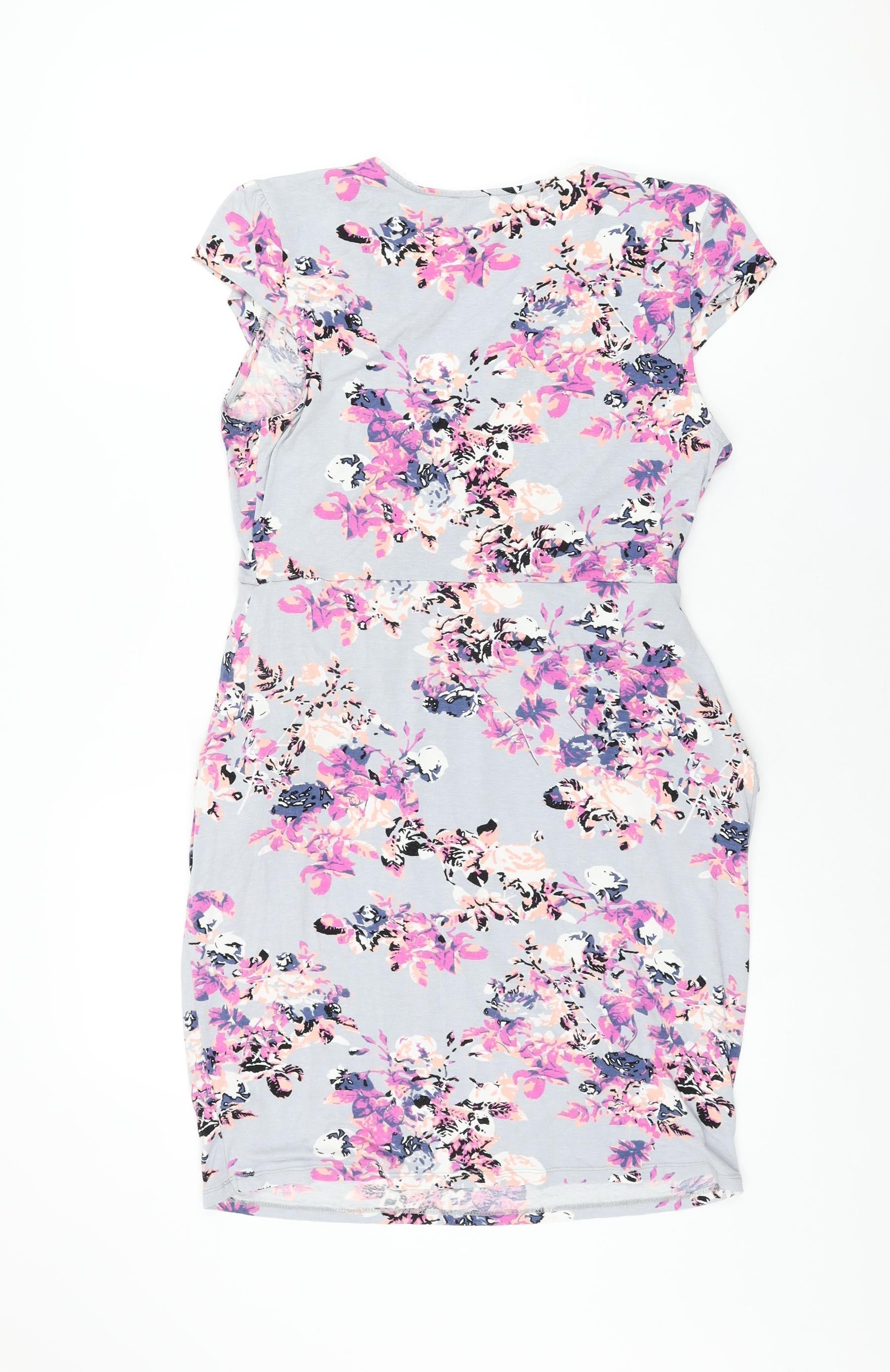 Dorothy Perkins Womens Blue Floral Viscose Shift Size 14 V-Neck Pullover