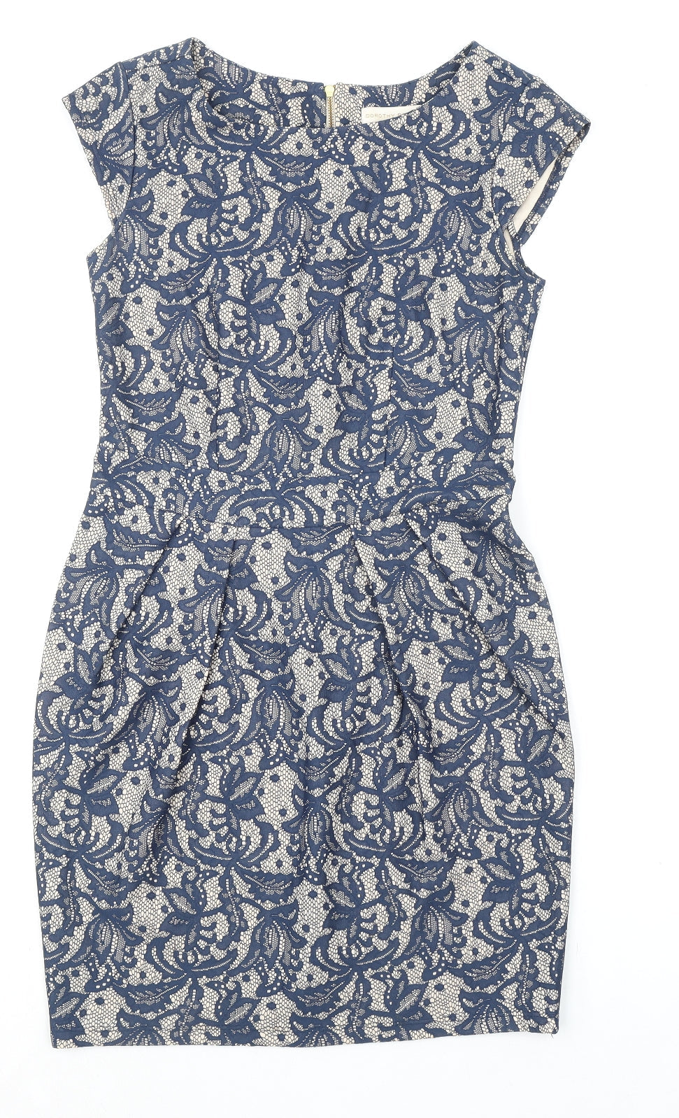 Dorothy Perkins Womens Blue Geometric Nylon Pencil Dress Size 10 Round Neck Zip