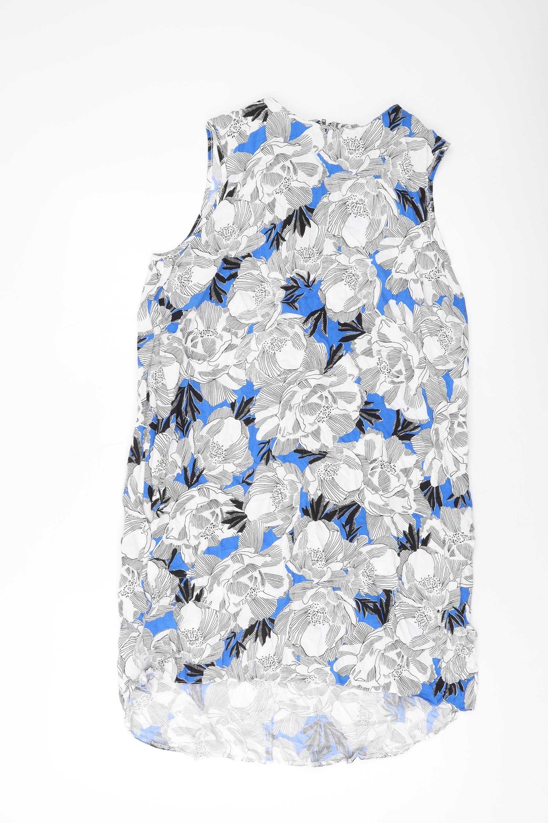 Dorothy Perkins Womens Blue Geometric Viscose Tank Dress Size 14 Round Neck Zip