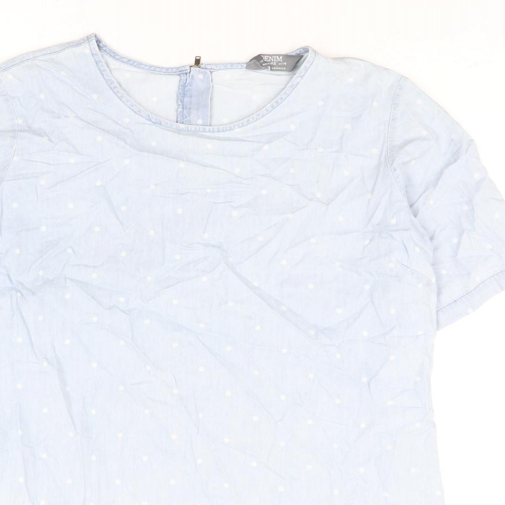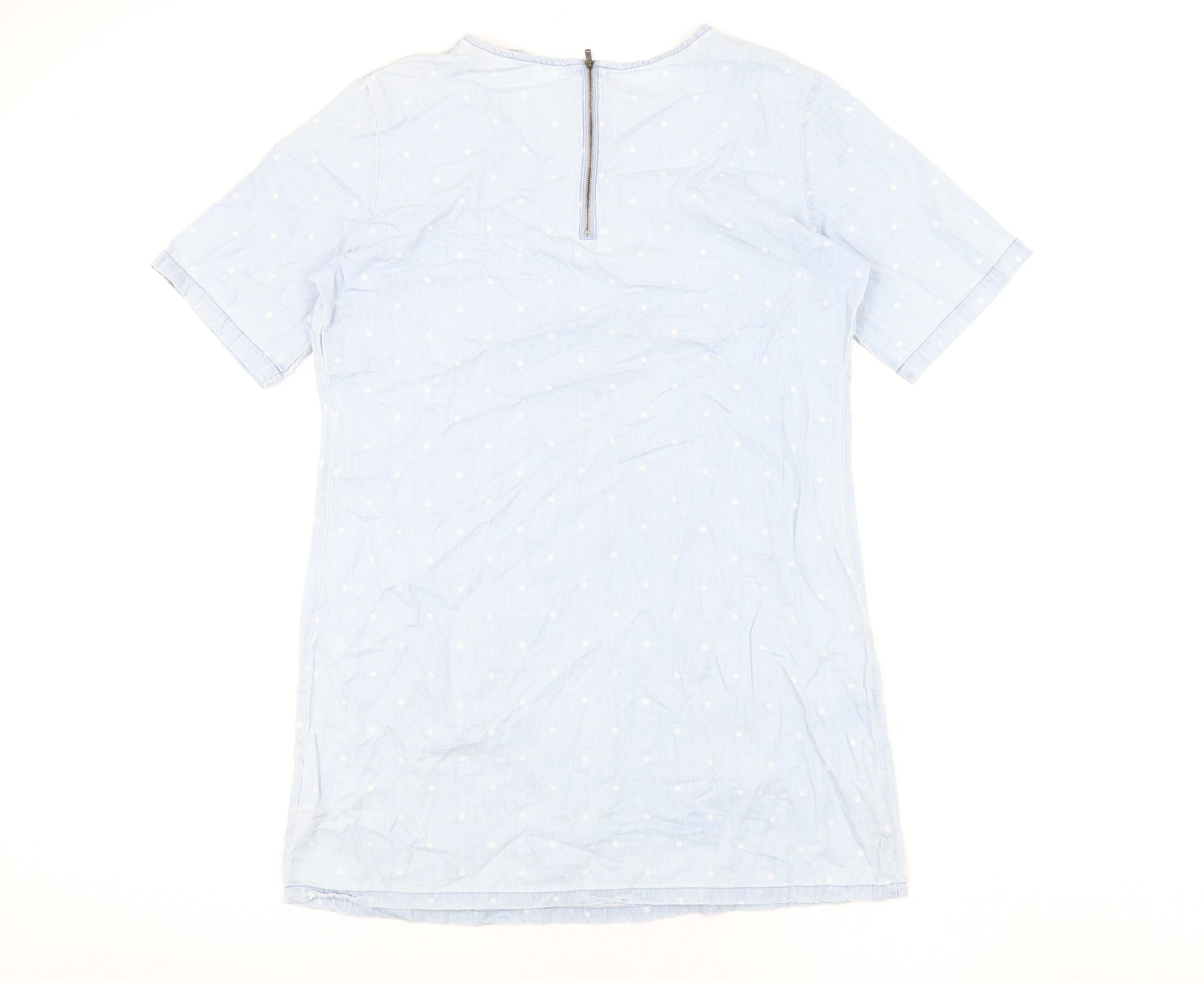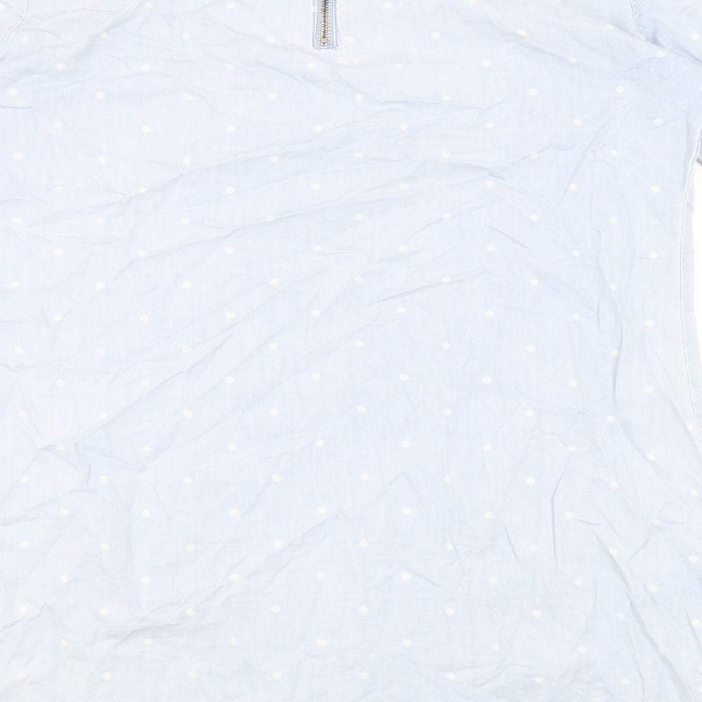 Dorothy Perkins Womens Blue Polka Dot Cotton Shift Size 14 Round Neck Zip