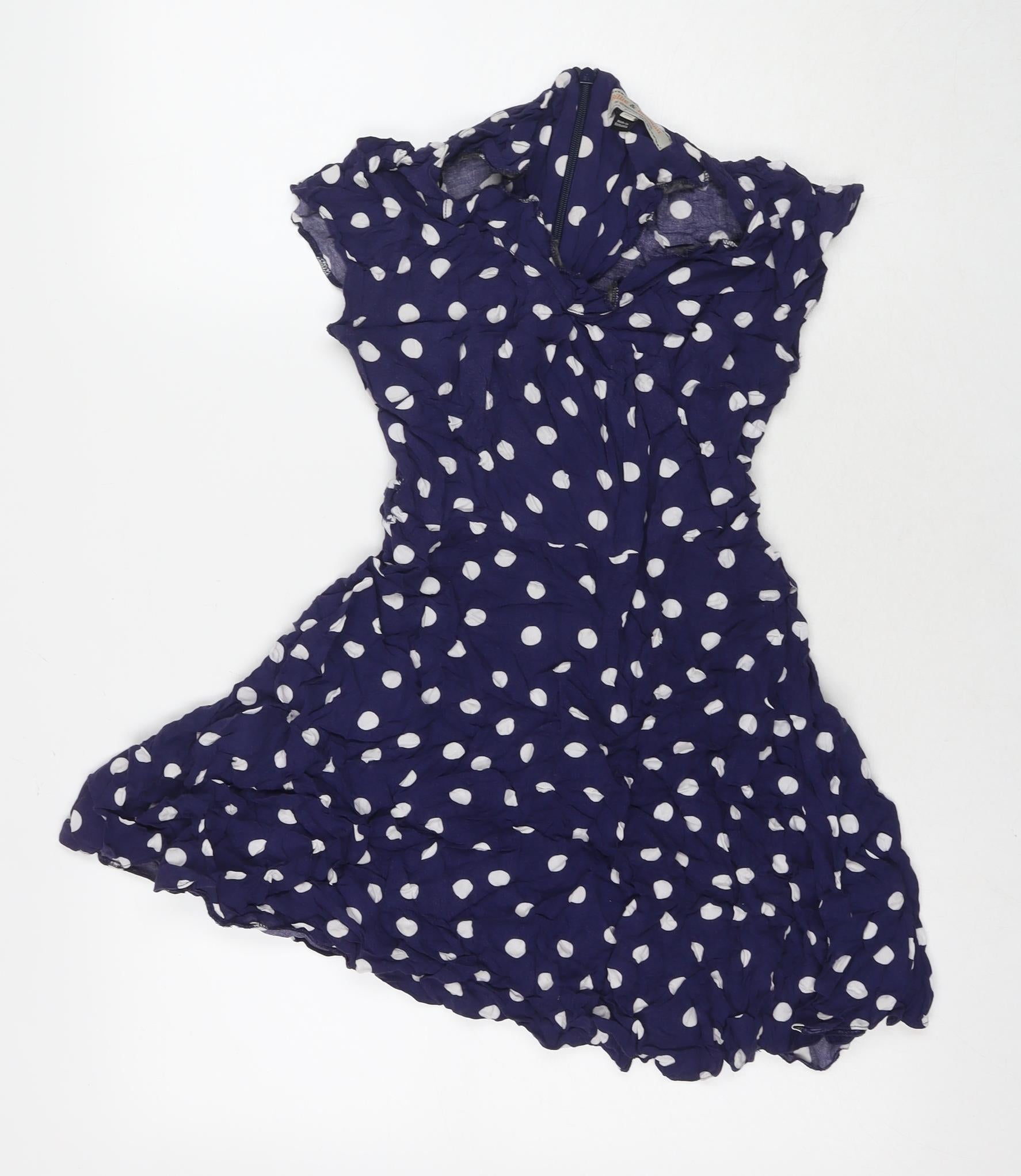 Dorothy Perkins Womens Blue Polka Dot Viscose Fit & Flare Size 10 V-Neck Zip