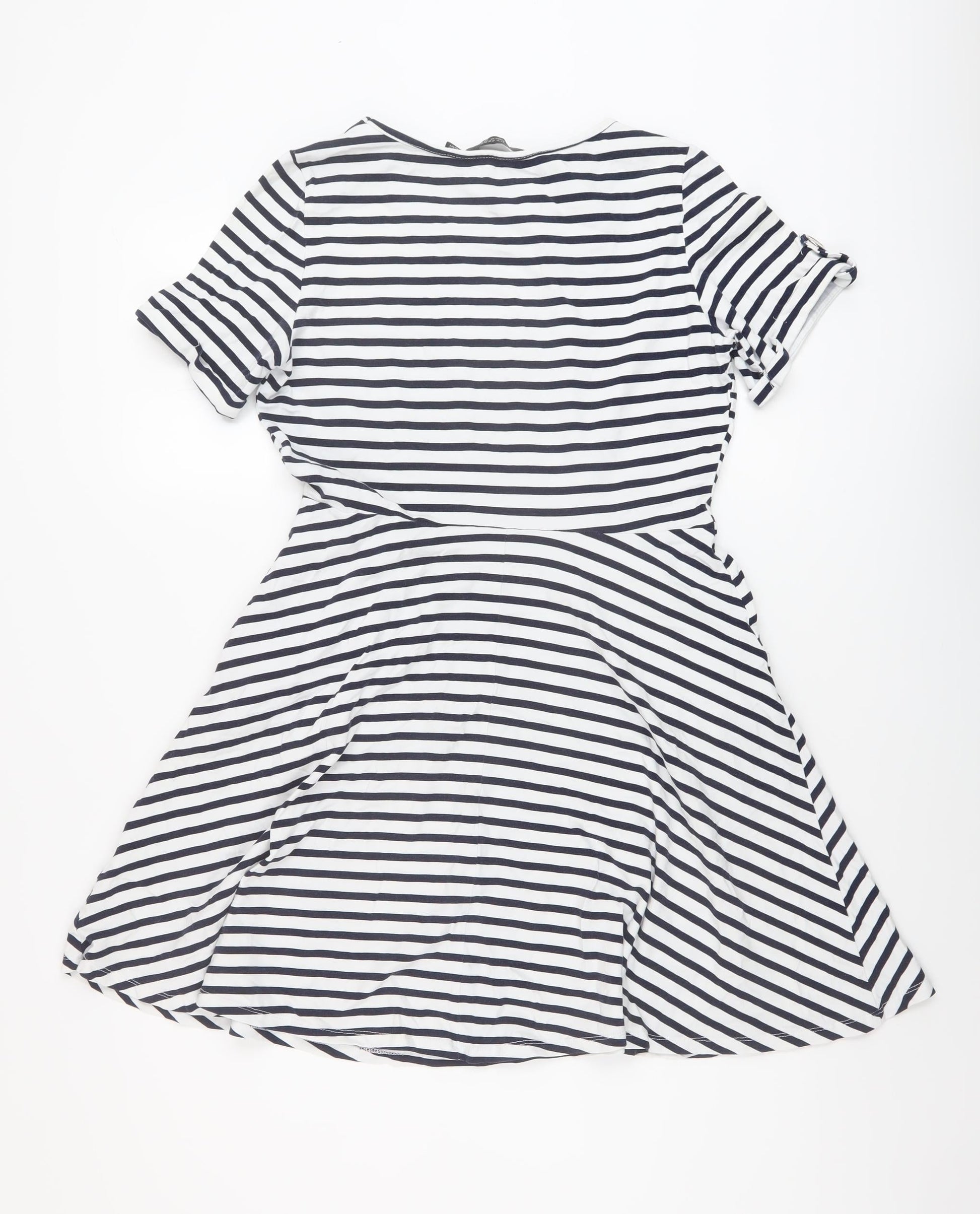 Dorothy Perkins Womens Blue Striped Cotton A-Line Size 12 Round Neck Pullover