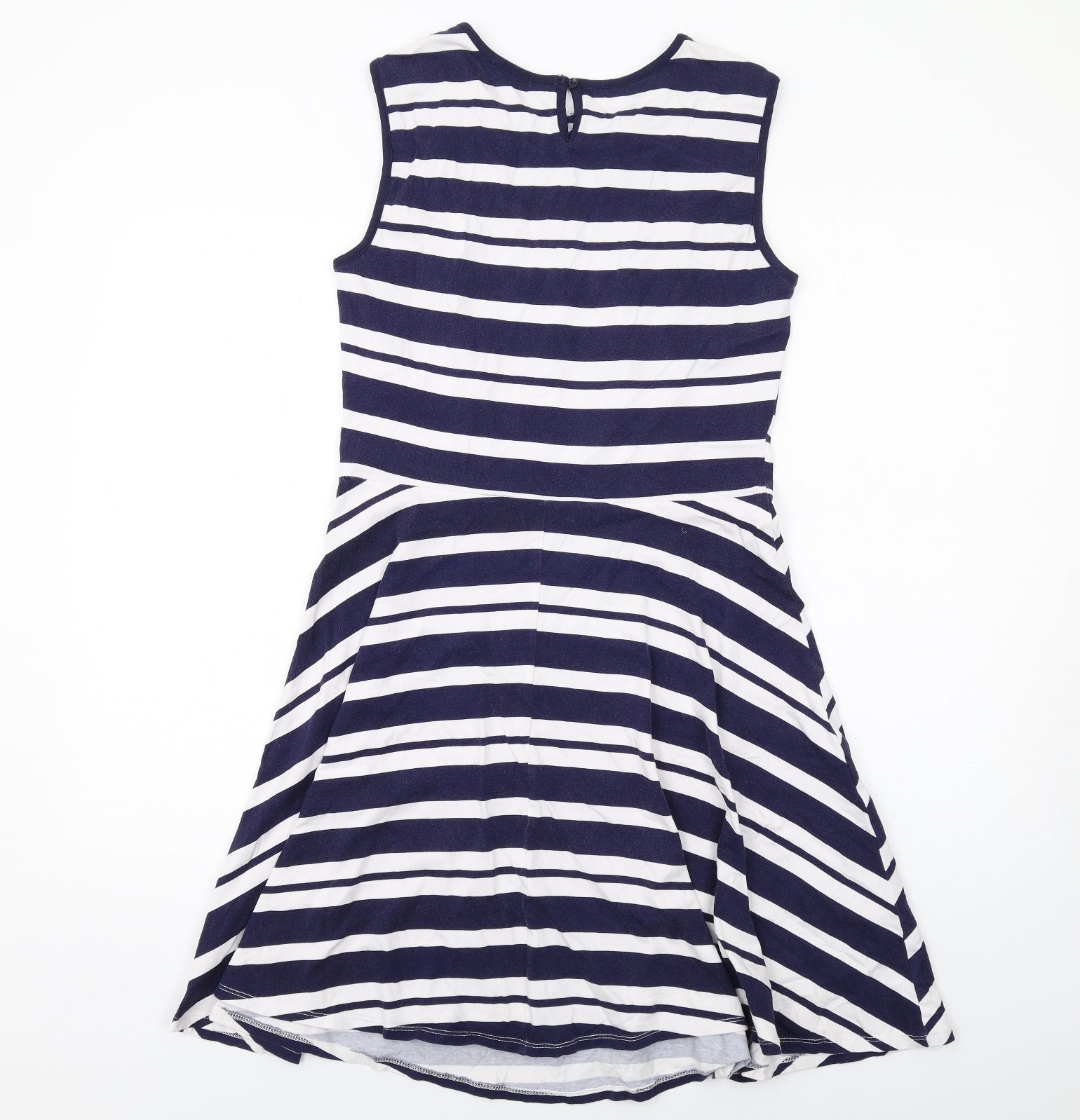 Dorothy Perkins Womens Blue Striped Cotton Trapeze & Swing Size 12 Crew Neck Pullover