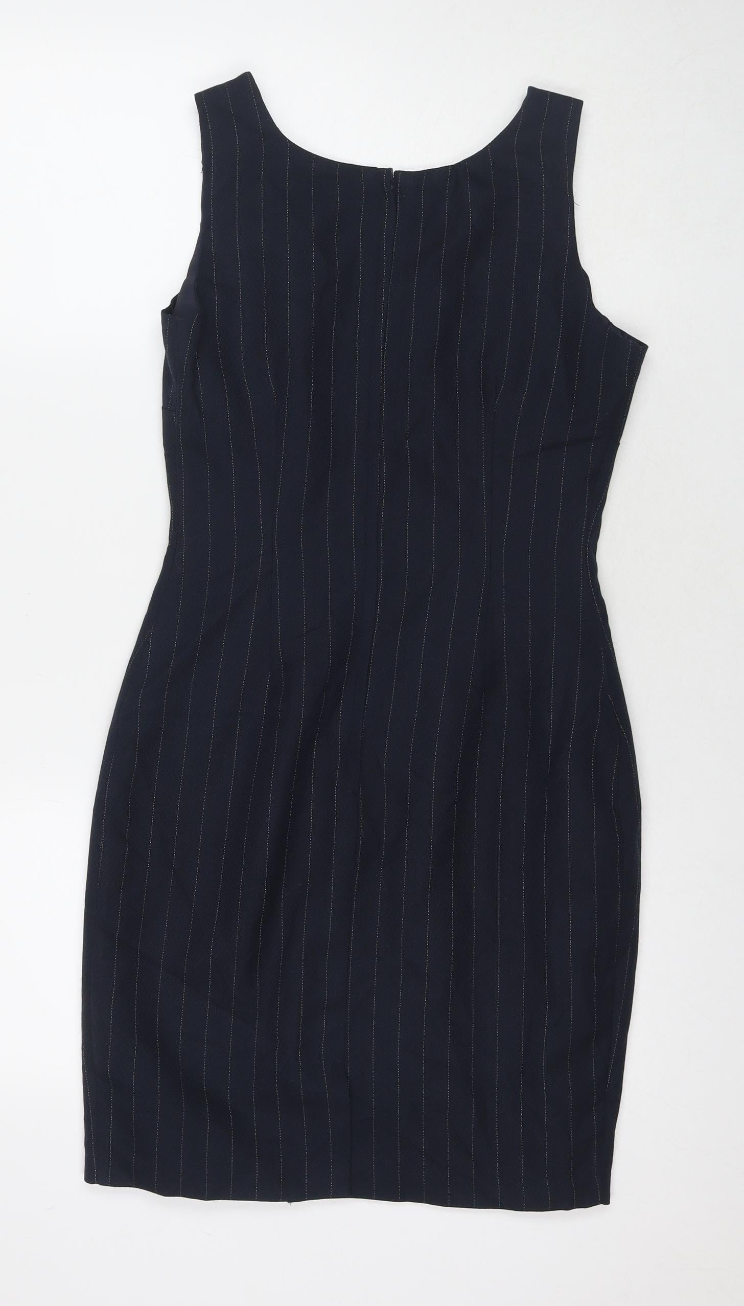 Dorothy Perkins Womens Blue Striped Viscose A-Line Size 10 Round Neck Zip