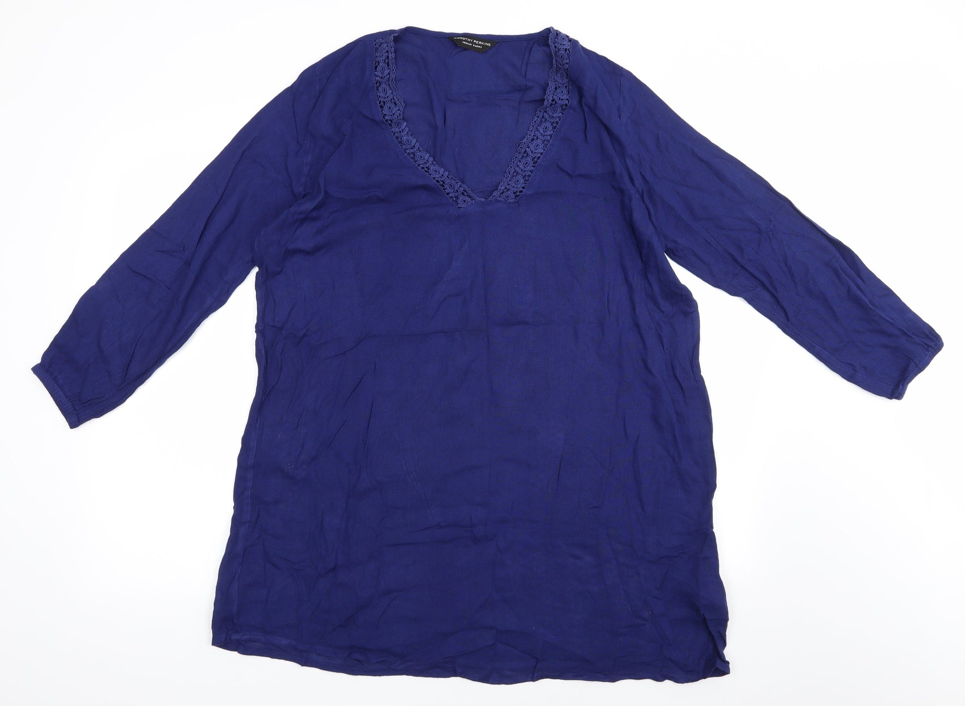Dorothy Perkins Womens Blue Viscose A-Line Size M V-Neck Pullover - Beach dress Lace trim Elastic Cuffs
