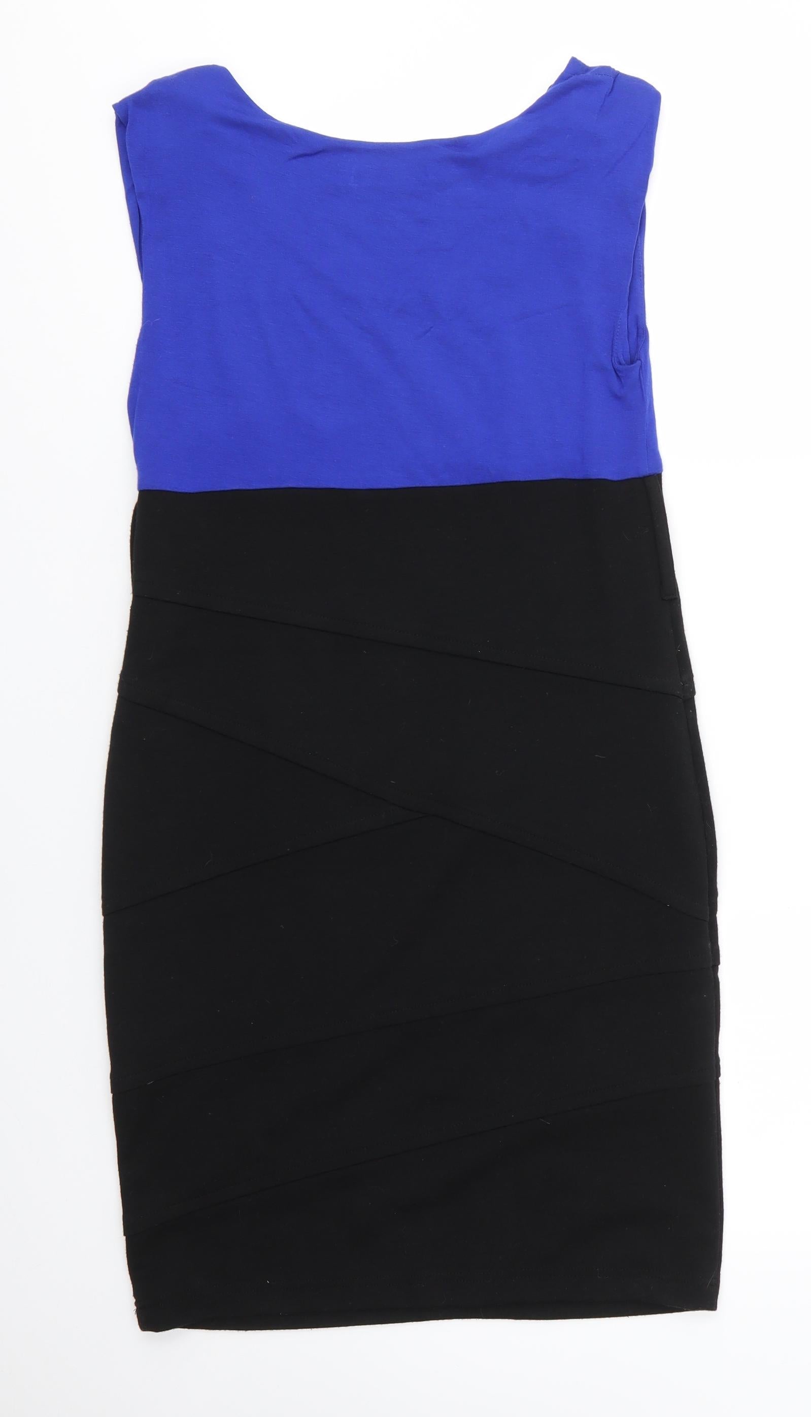 Dorothy Perkins Womens Blue Viscose Pencil Dress Size 12 Round Neck