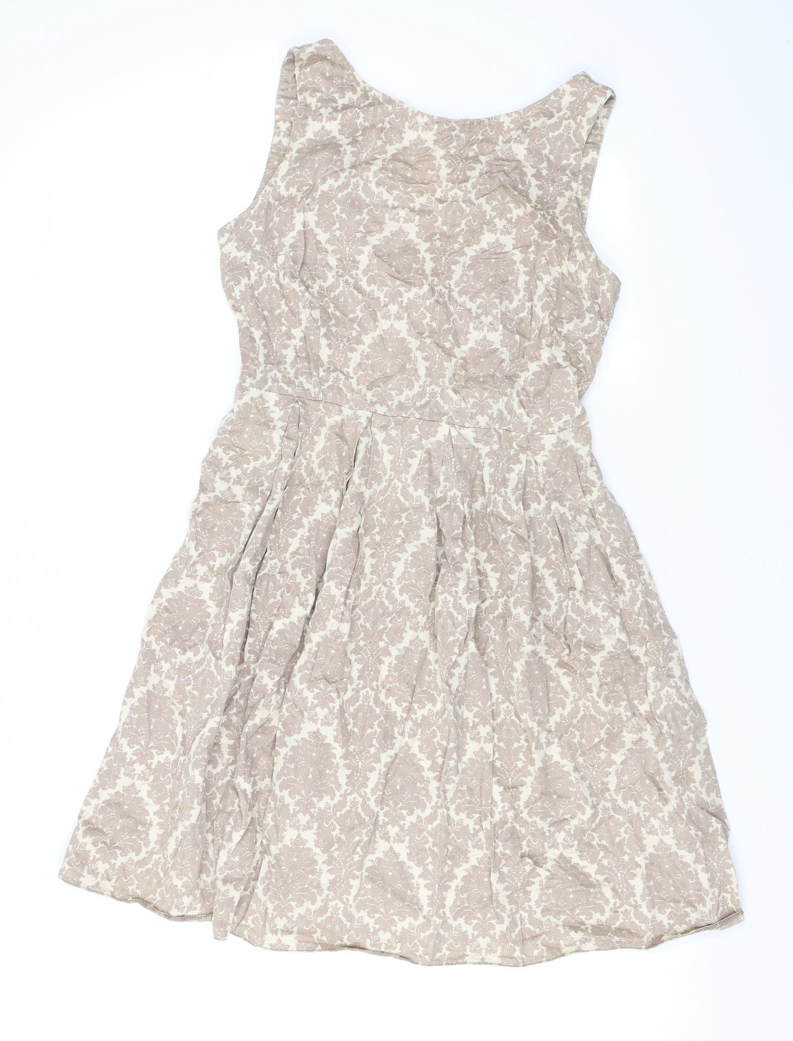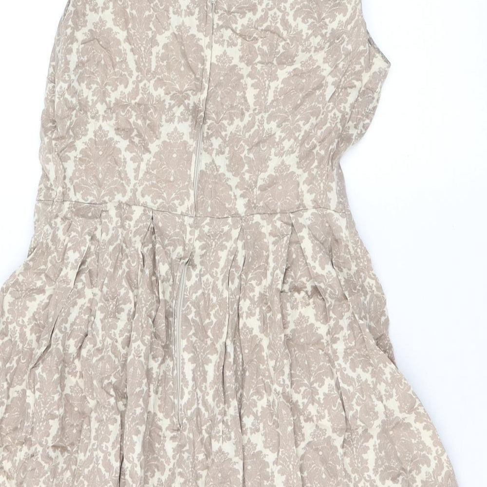 Dorothy Perkins Womens Brown Floral Cotton Skater Dress Size 12 Round Neck Zip
