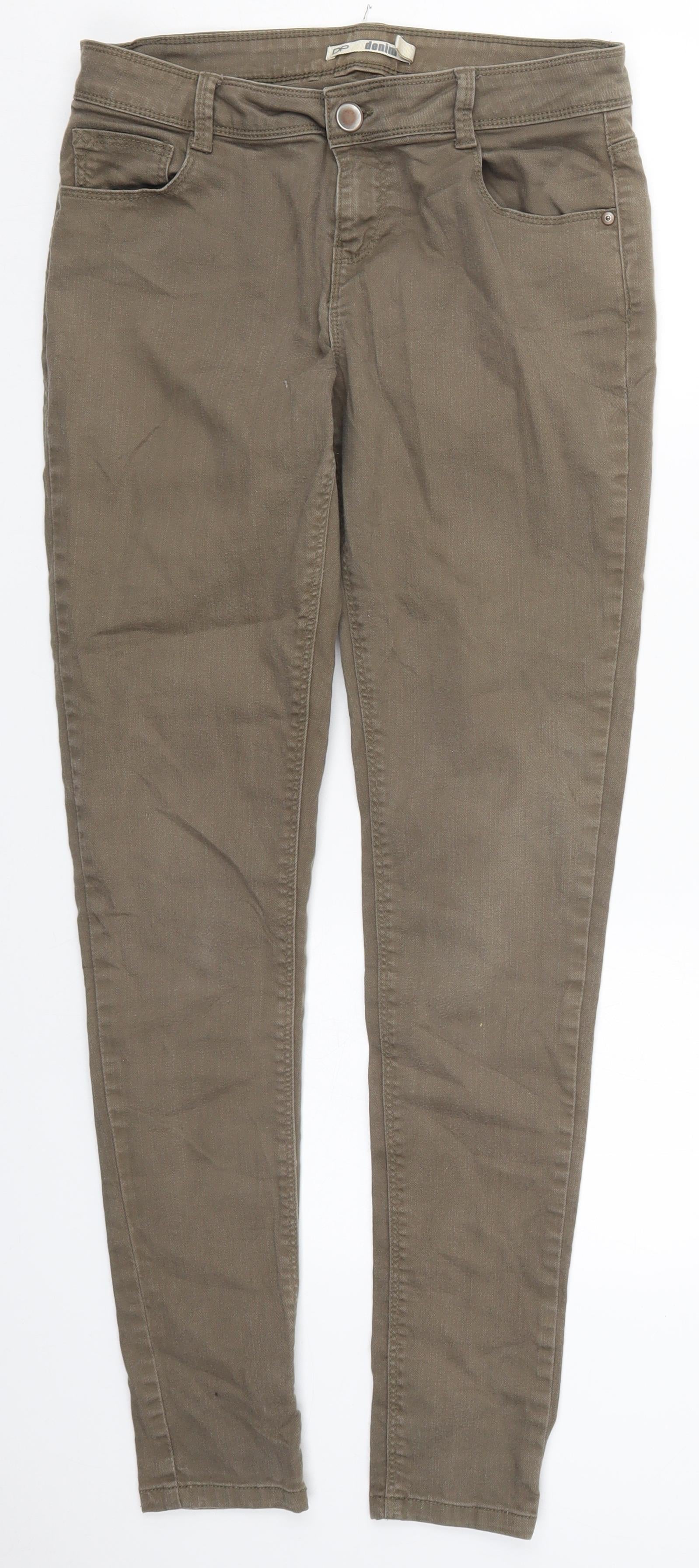 Dorothy Perkins Womens Green Cotton Skinny Jeans Size 10 L29 in Regular Button
