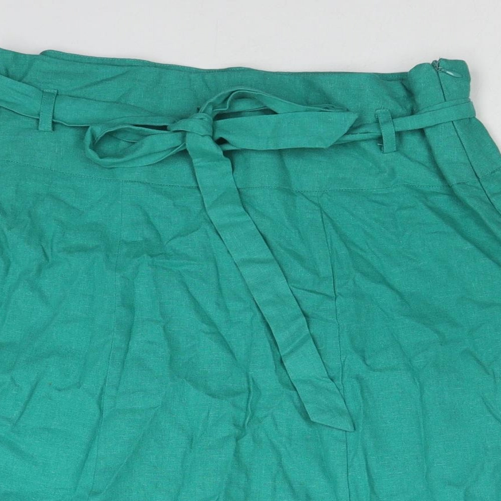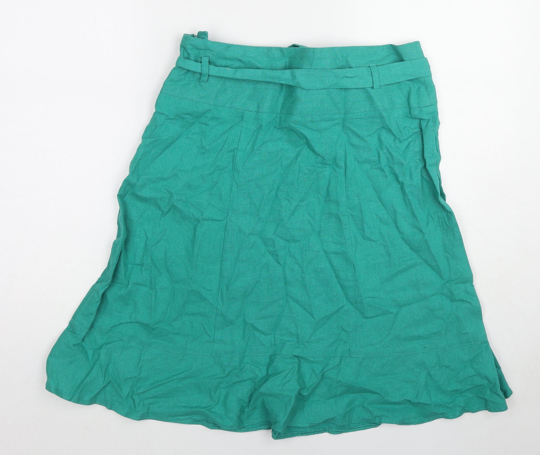 Dorothy Perkins Womens Green Linen A-Line Skirt Size 12 Zip - Belt included