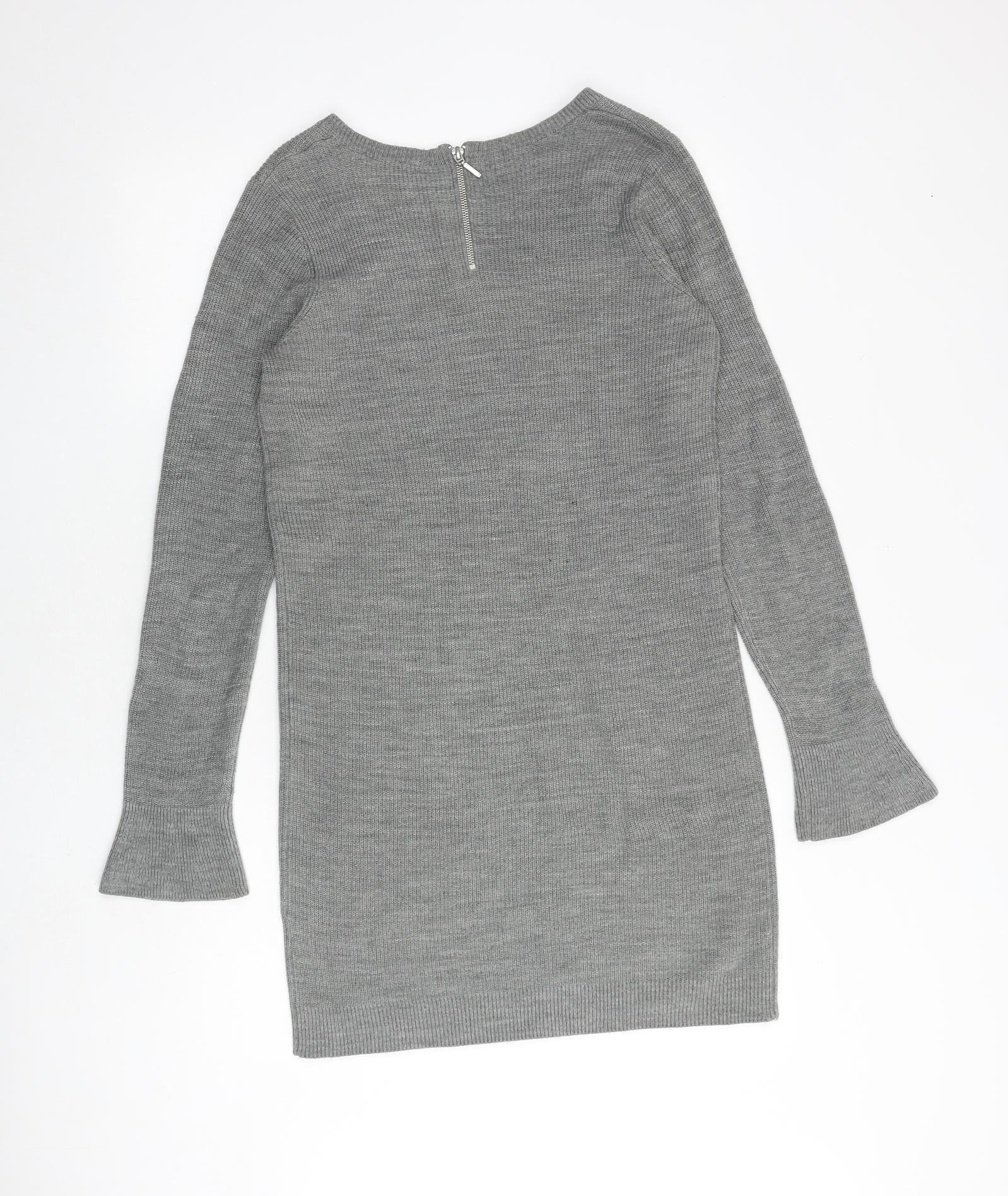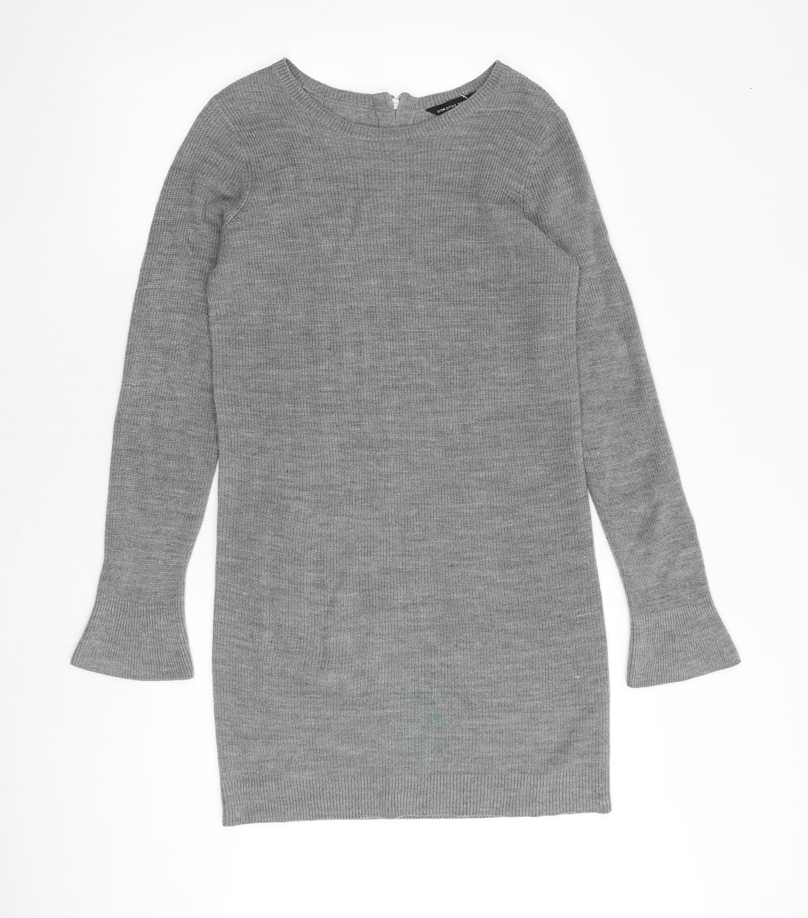 Dorothy Perkins Womens Grey Acrylic Jumper Dress Size 10 Boat Neck Zip