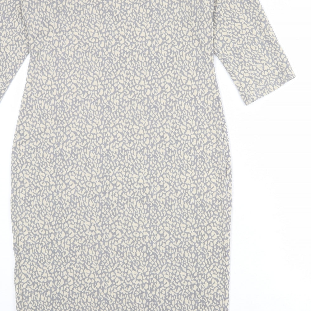 Dorothy Perkins Womens Grey Animal Print Polyester Bodycon Size 12 Round Neck Pullover - Leopard pattern