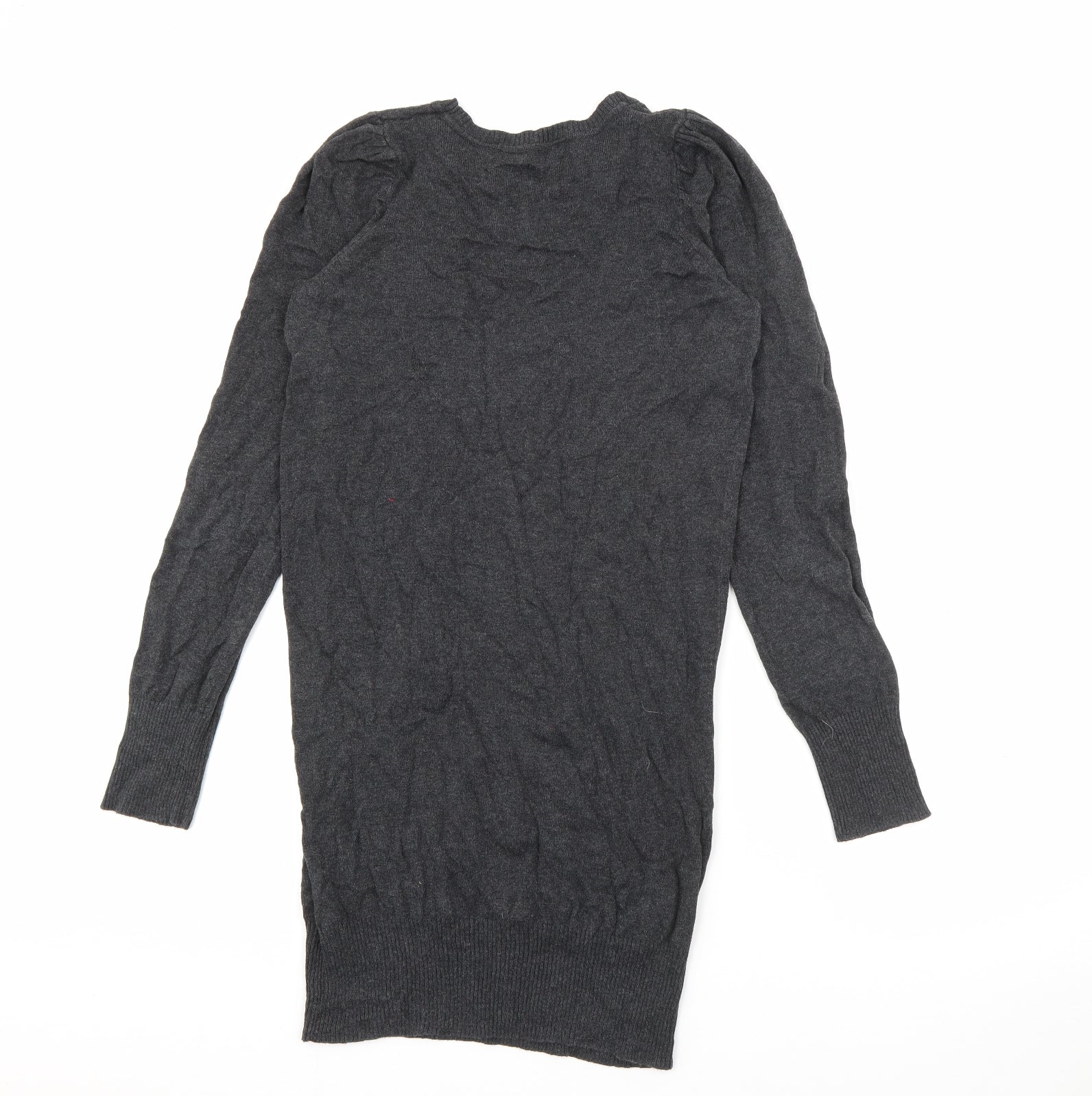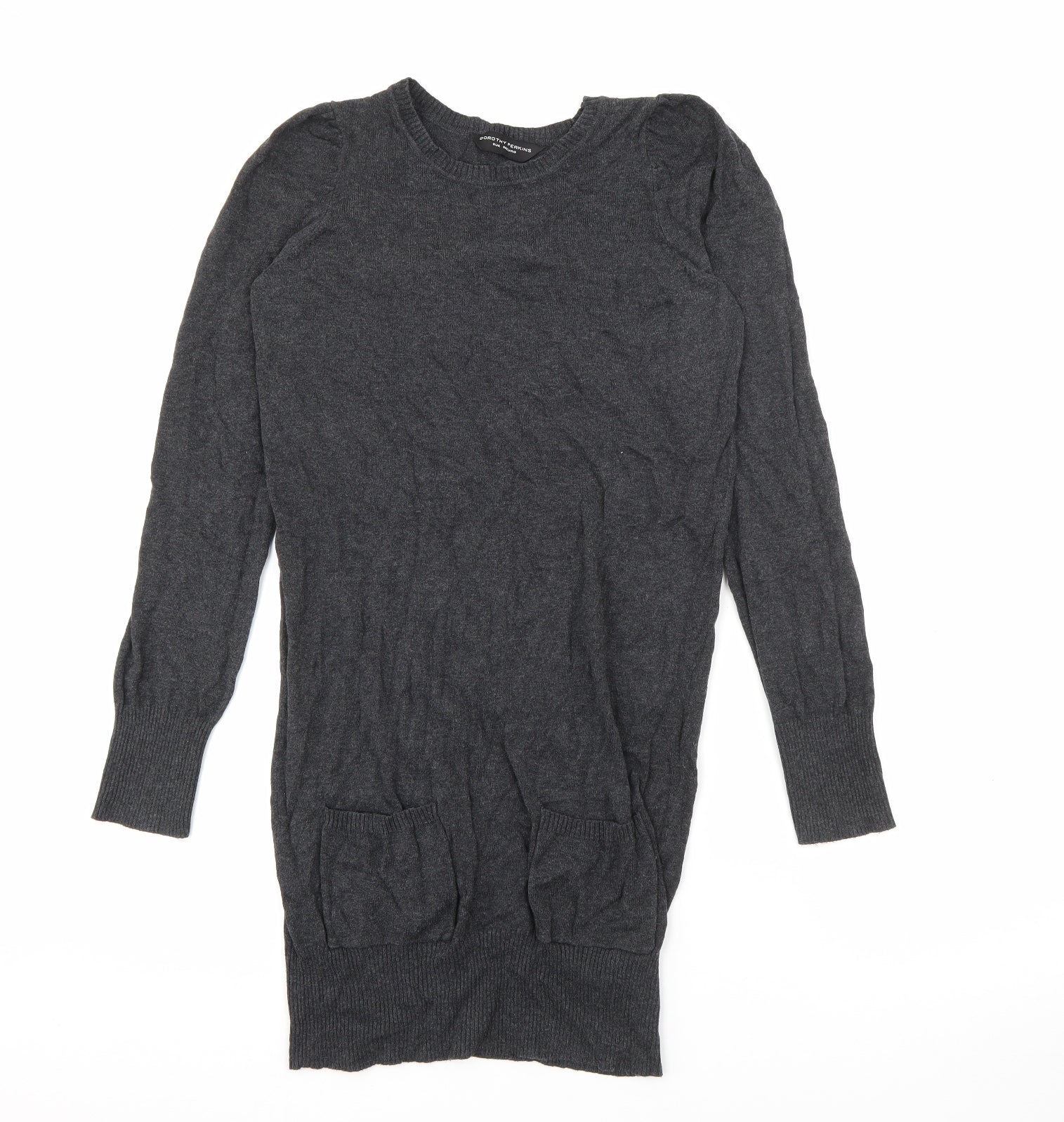 Dorothy Perkins Womens Grey Cotton Jumper Dress Size 6 Crew Neck