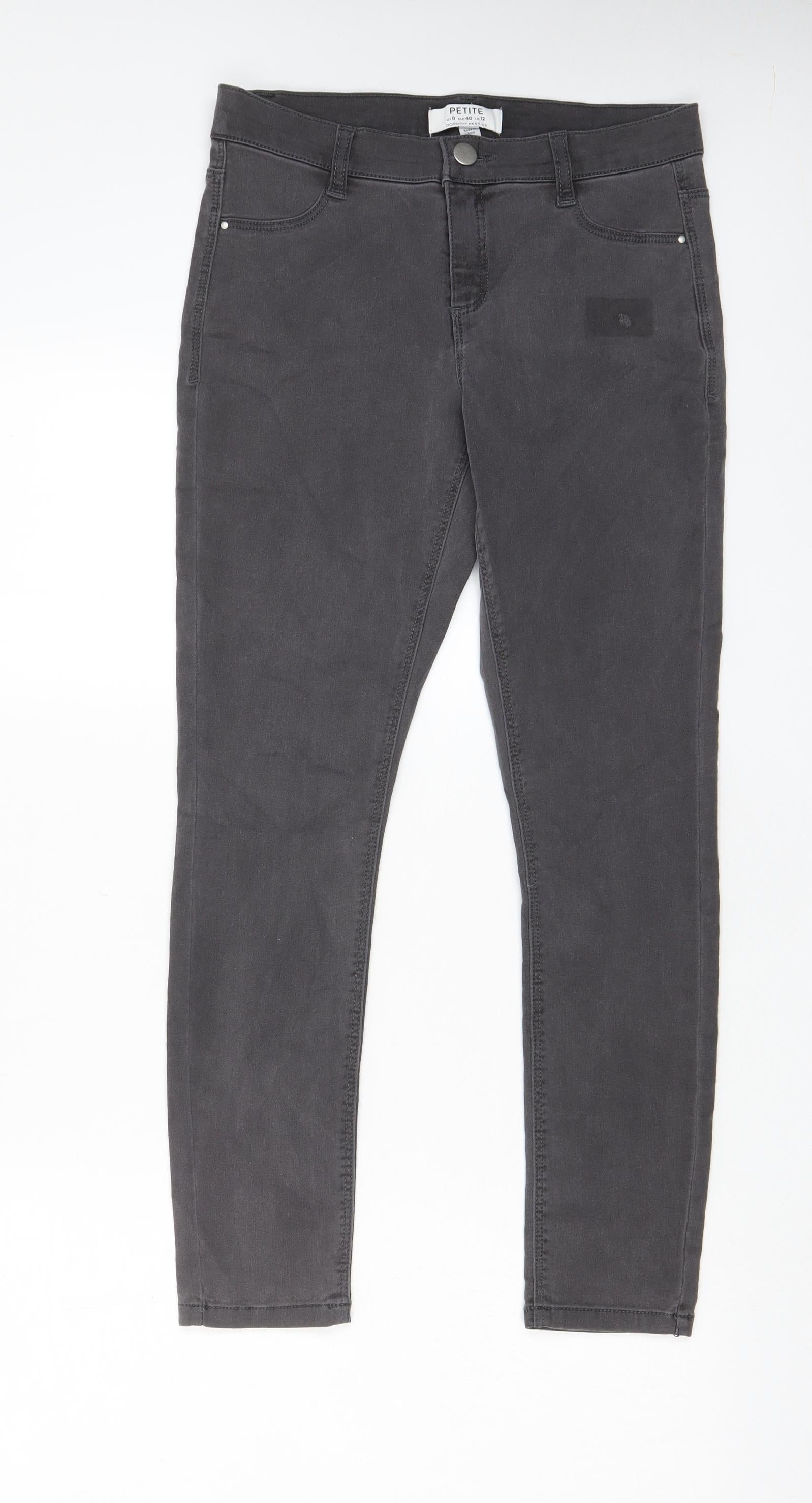 Dorothy Perkins Womens Grey Cotton Skinny Jeans Size 12 L27 in Regular Zip - Pockets