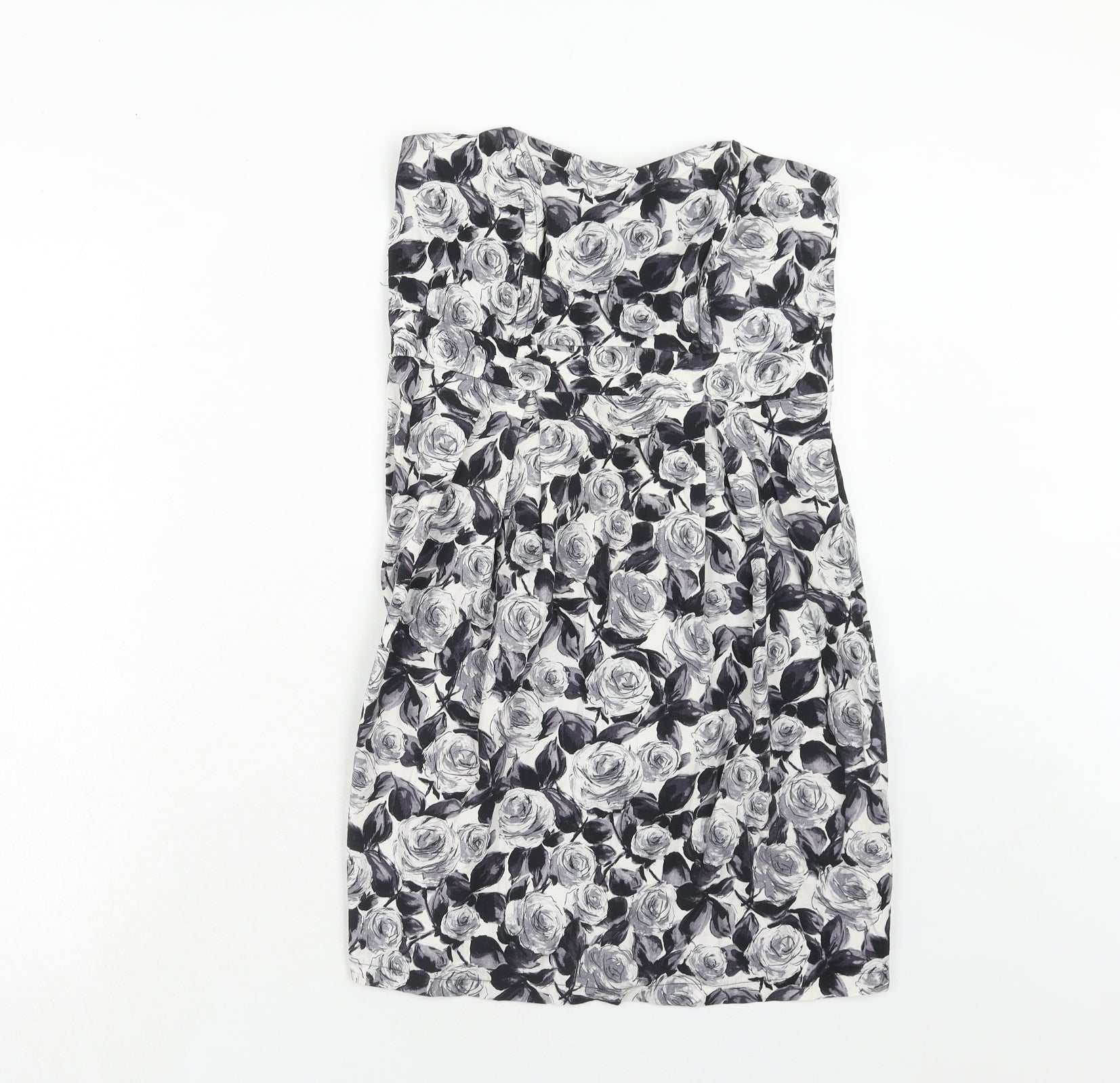 Dorothy Perkins Womens Grey Floral Cotton A-Line Size 12 Off the Shoulder Zip