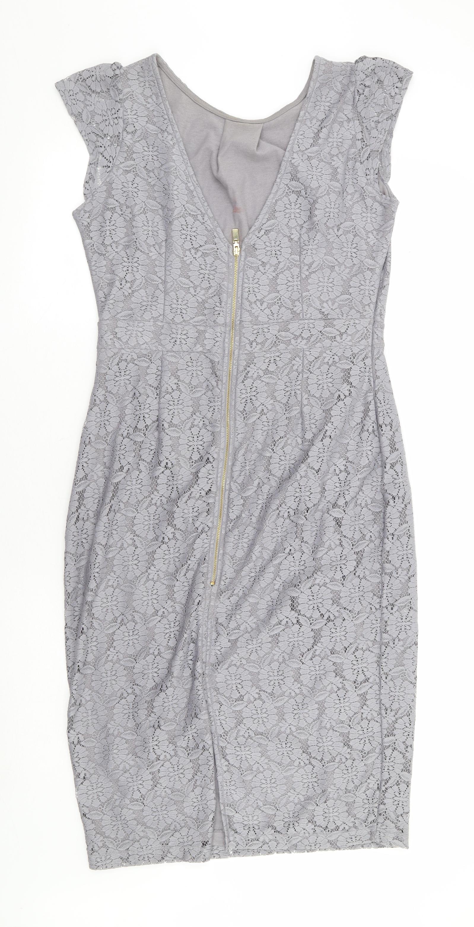 Dorothy Perkins Womens Grey Floral Polyester Pencil Dress Size 14 Round Neck Zip