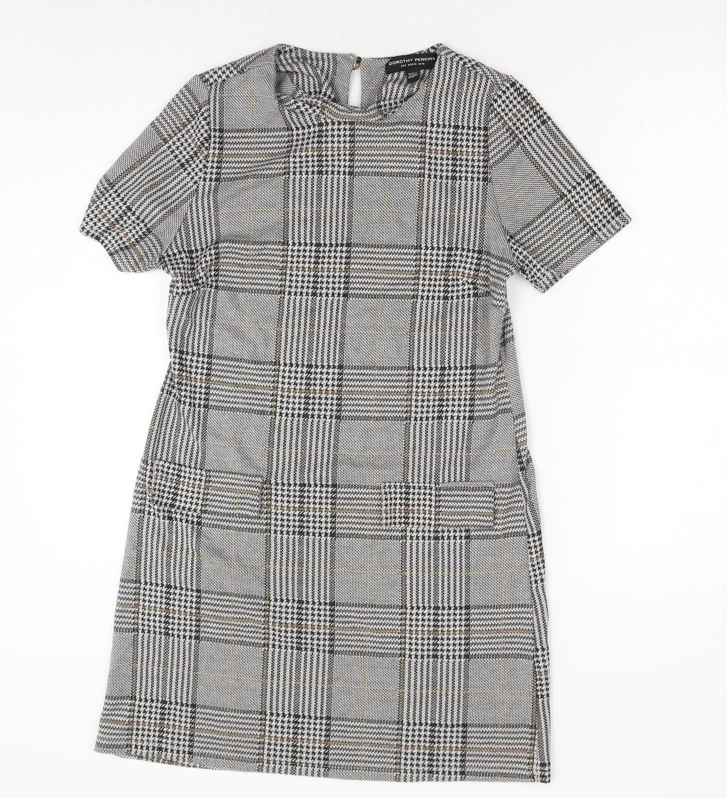 Dorothy Perkins Womens Grey Geometric Polyester Shift Size 10 Round Neck Pullover