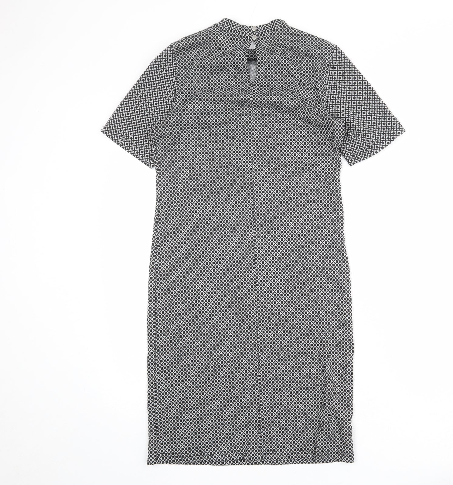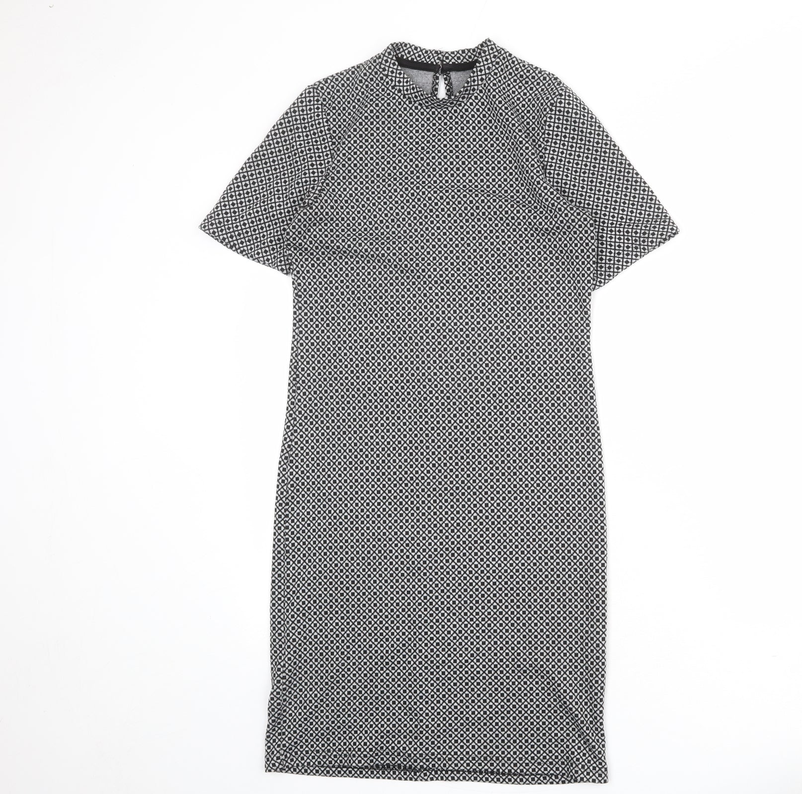 Dorothy Perkins Womens Grey Geometric Polyester Shift Size 12 Mock Neck Button