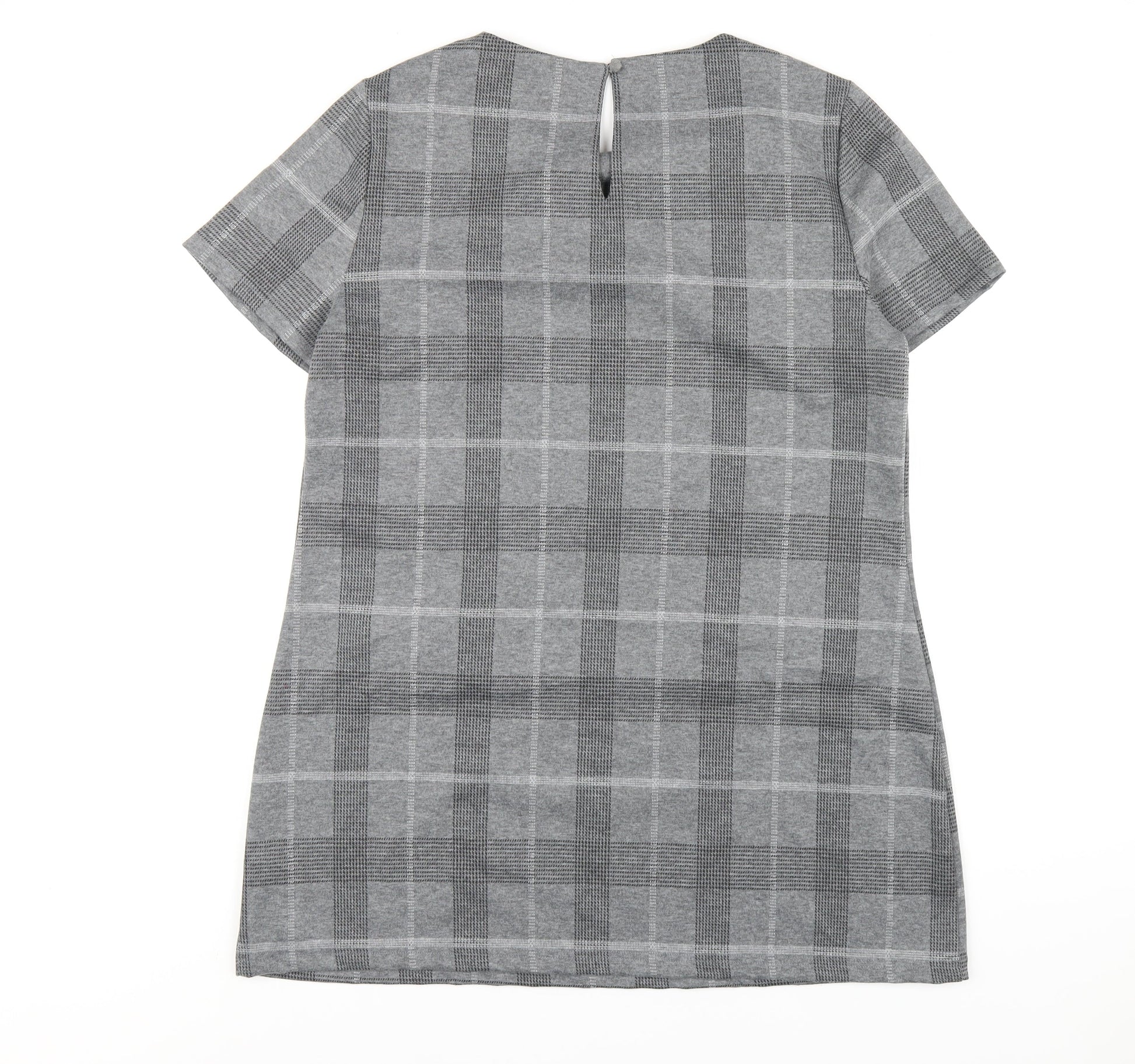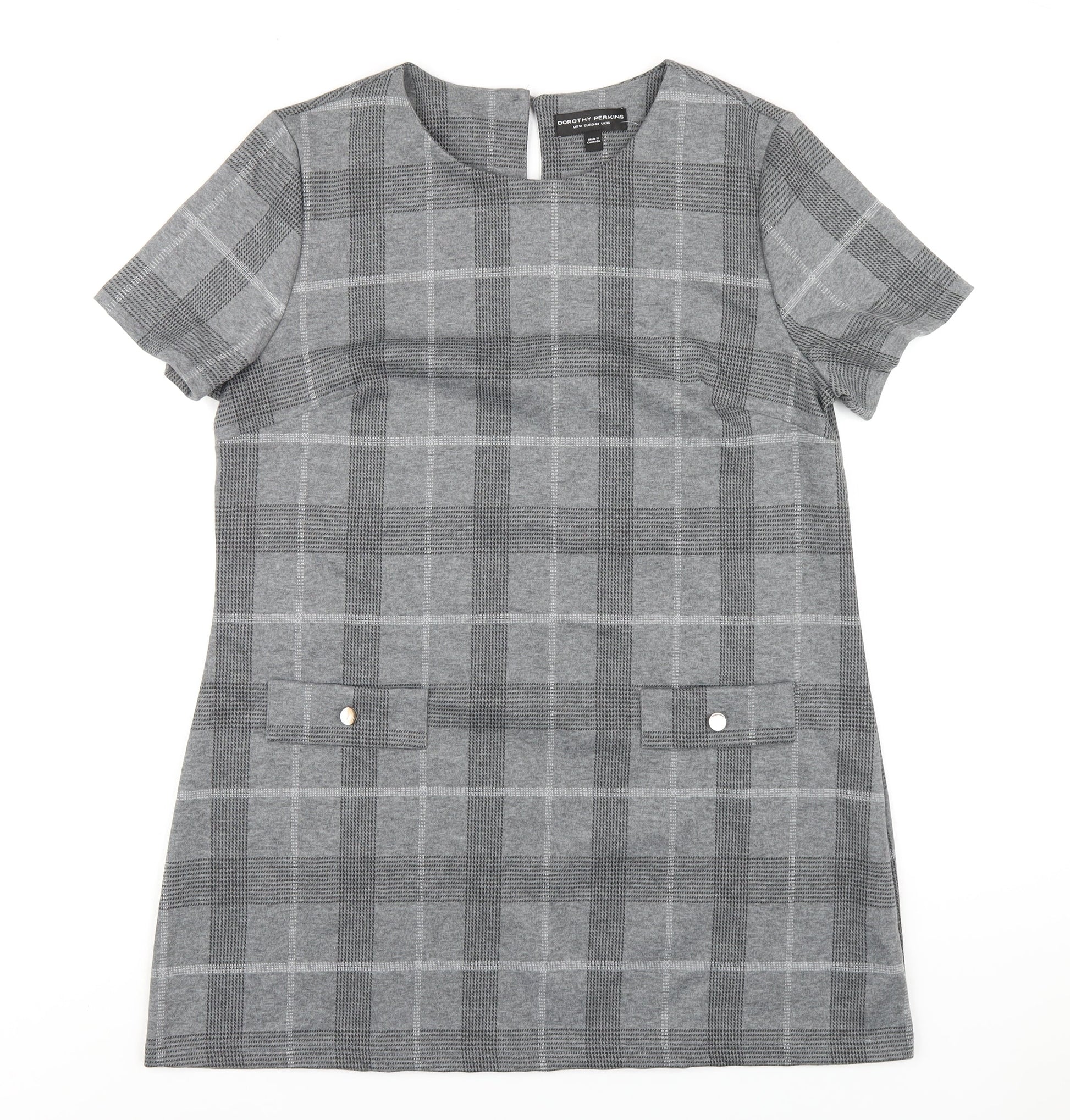 Dorothy Perkins Womens Grey Plaid Polyester A-Line Size 16 Round Neck Button