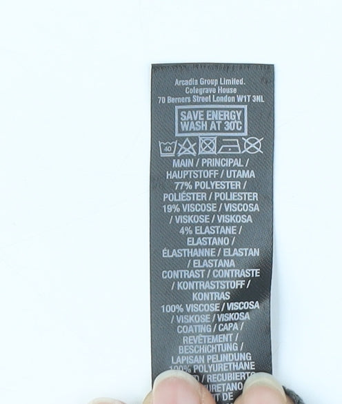 - Material Breakdown: 77% Polyester 19% Viscose 4% Elastane