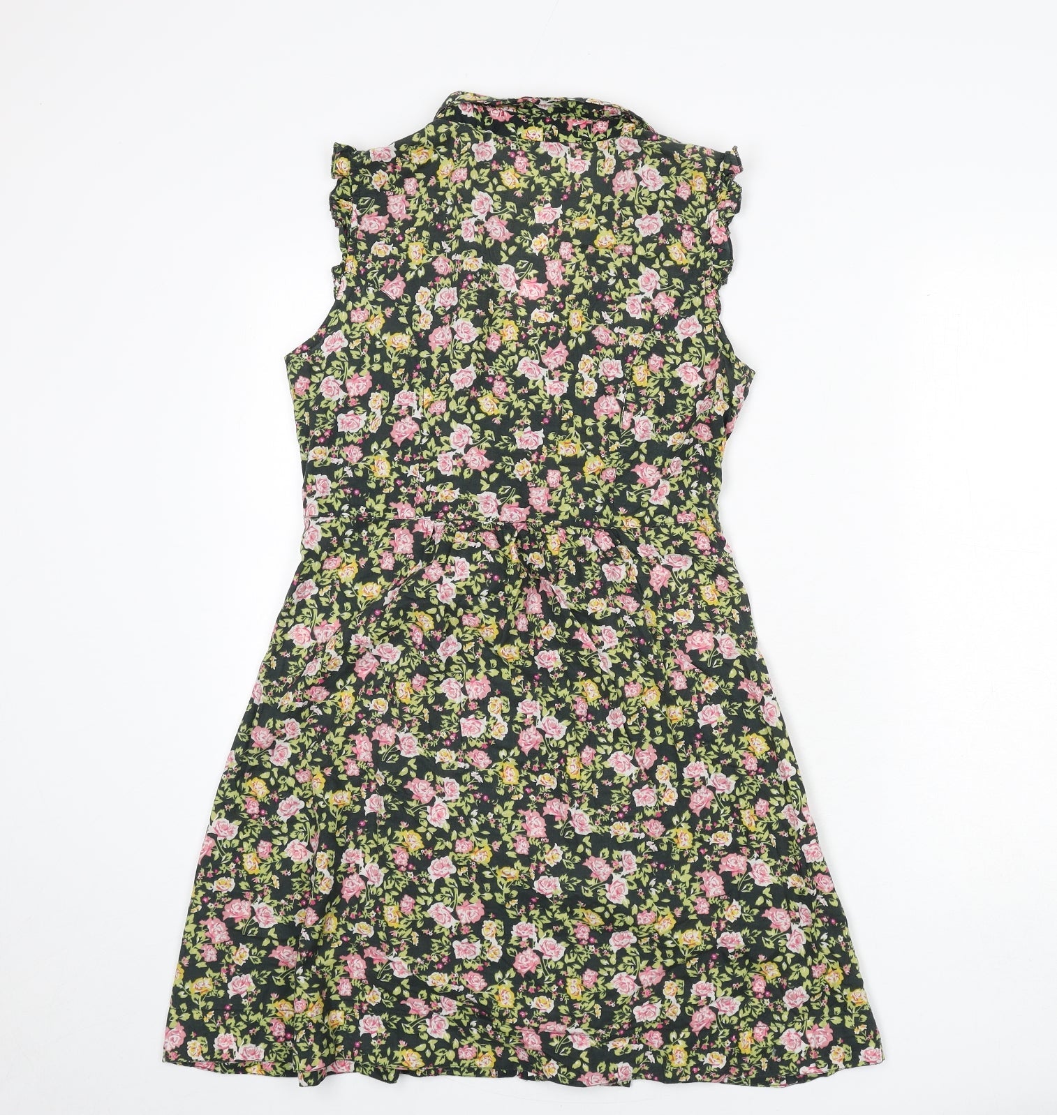 Dorothy Perkins Womens Multicoloured Floral Cotton A-Line Size 10 V-Neck Button - Ruffle Detail